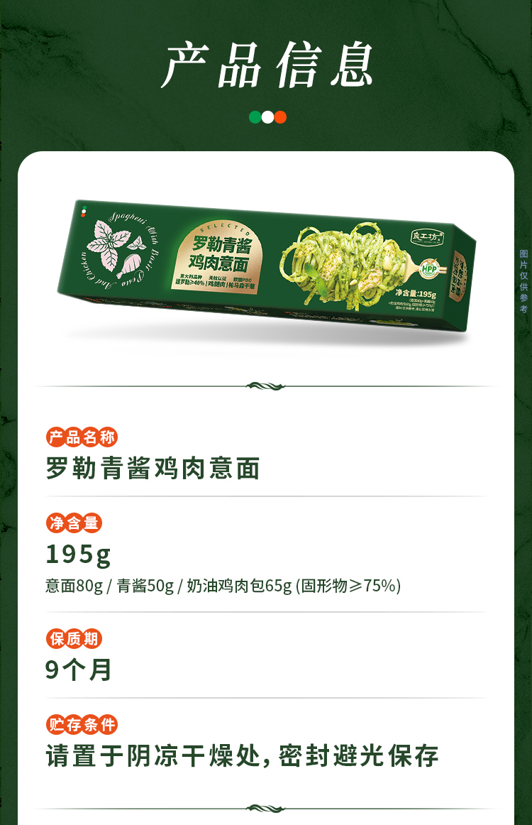 良工坊罗勒青酱鸡肉意面195g