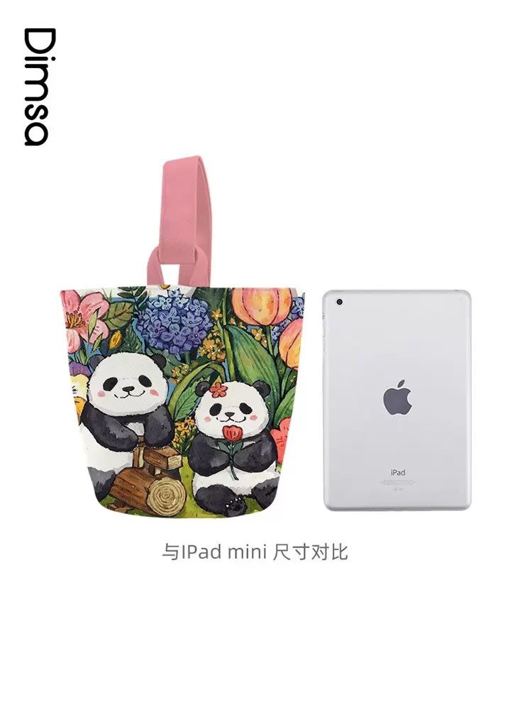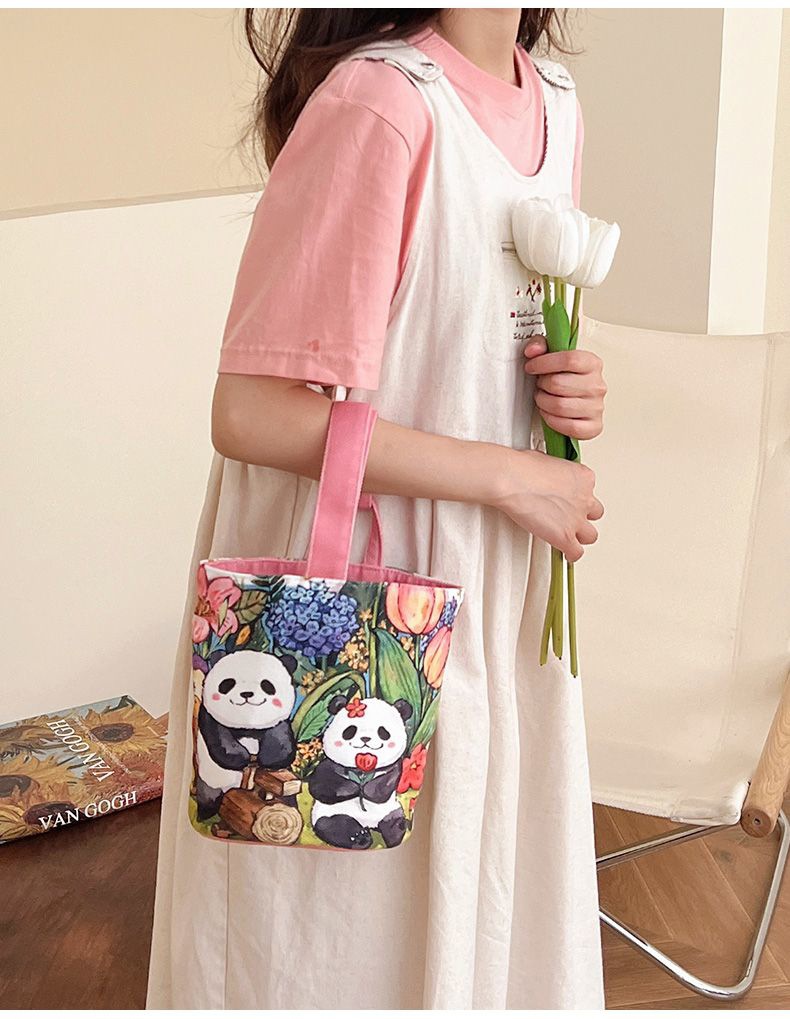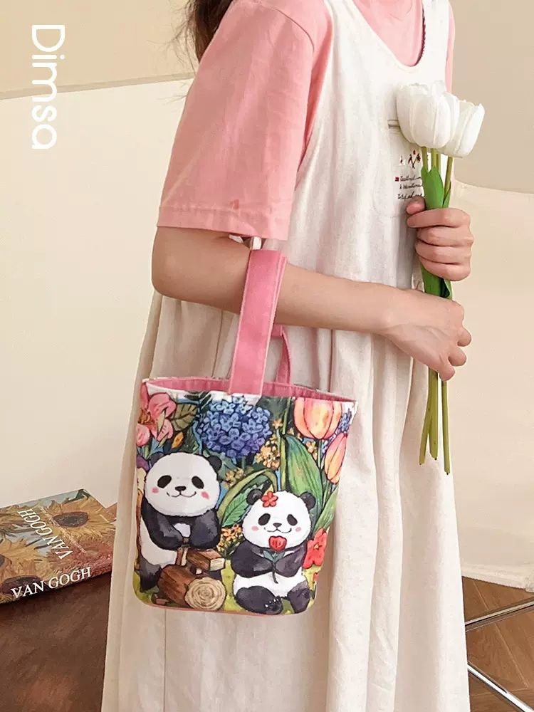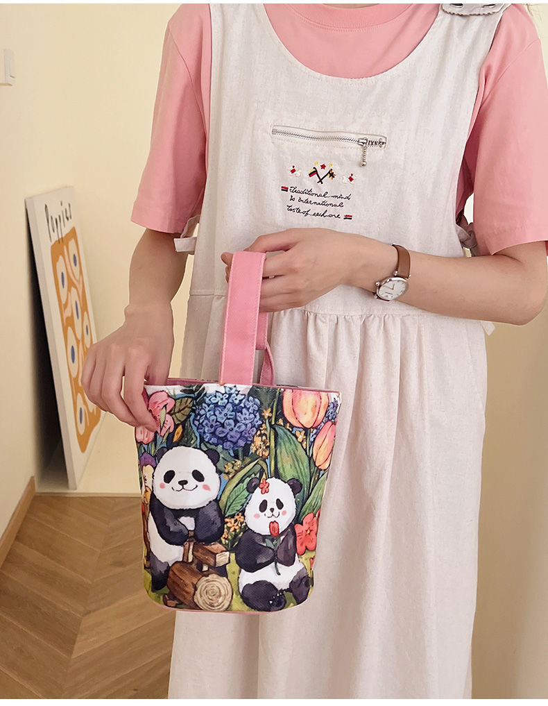 【熊猫手提包】卡通国宝熊猫帆布包 水桶形状手拎便当包 外出妈咪包上班手提包