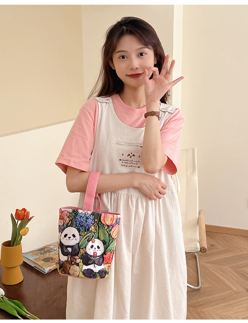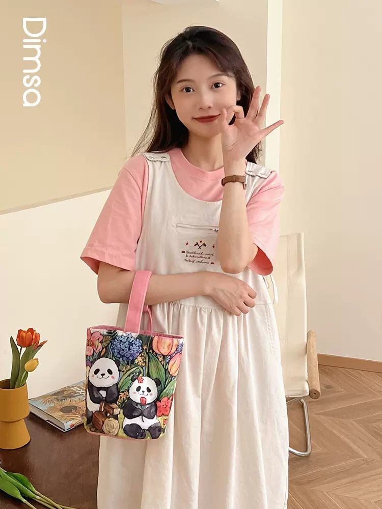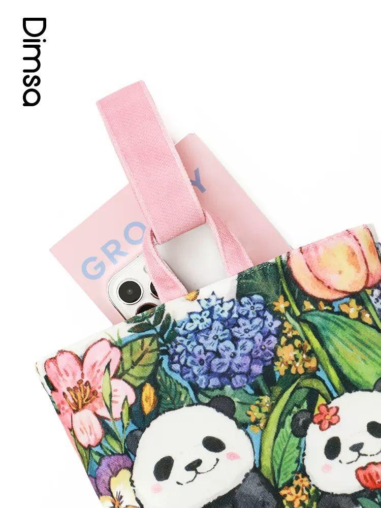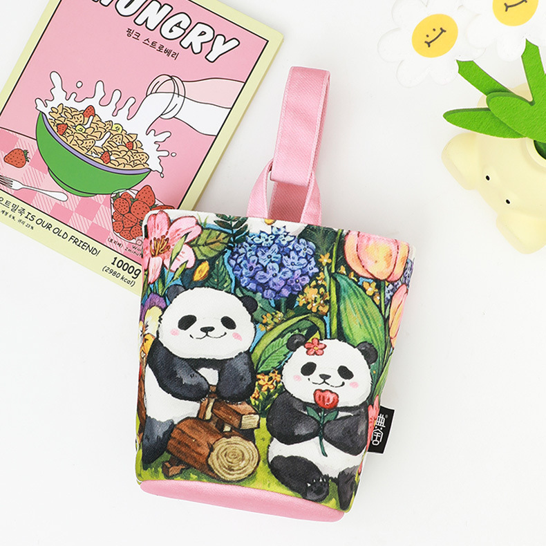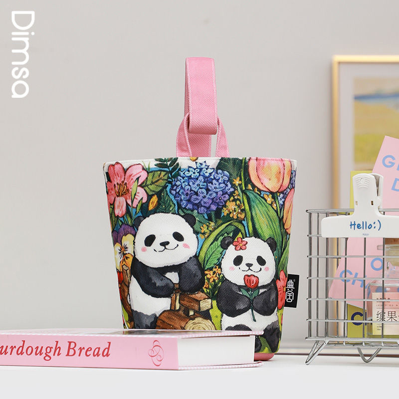 【熊猫手提包】卡通国宝熊猫帆布包 水桶形状手拎便当包 外出妈咪包上班手提包
