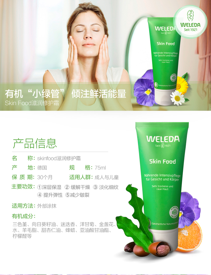 Weleda维蕾德 skinfood 贝嫂推荐 全能霜 75ml