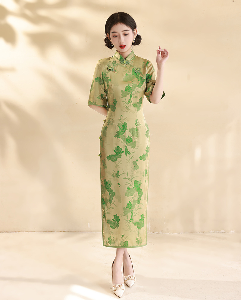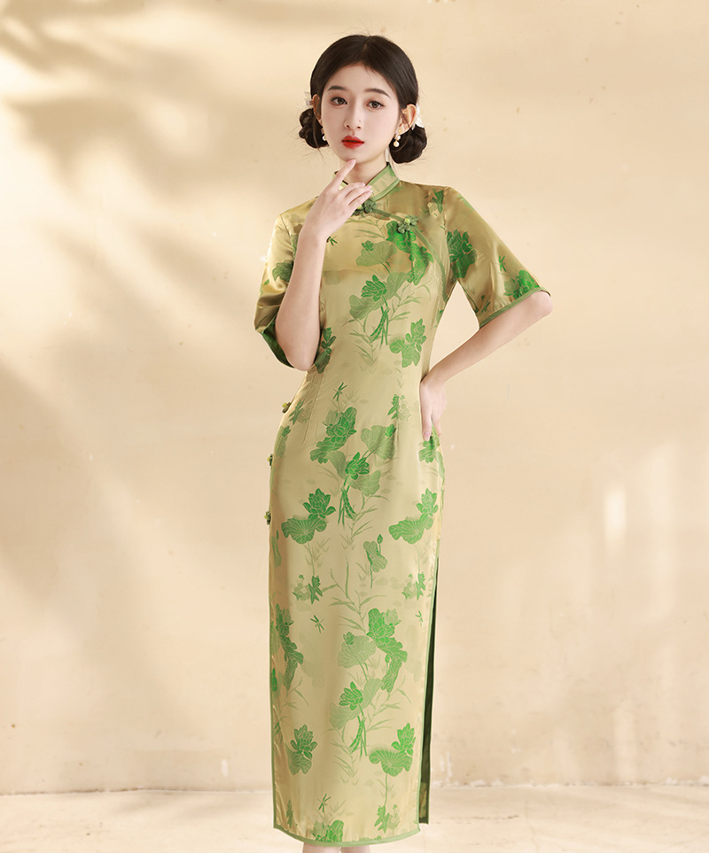 春夏新款,改良旗袍改良修身日常金色送考走秀气质旗袍XL-24051