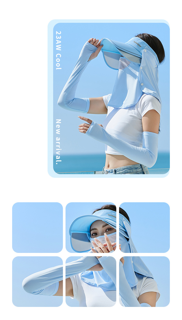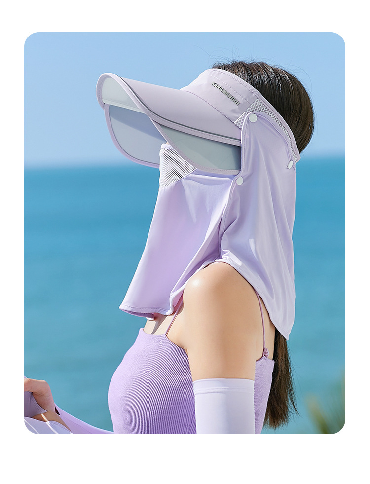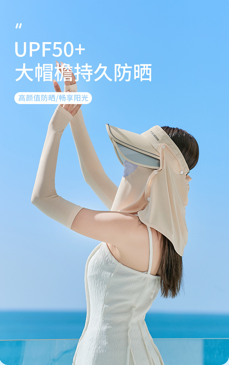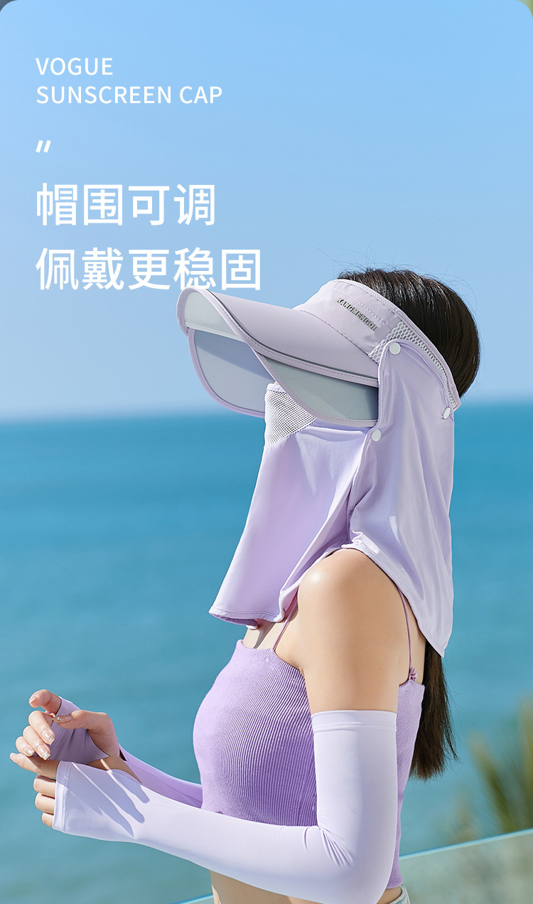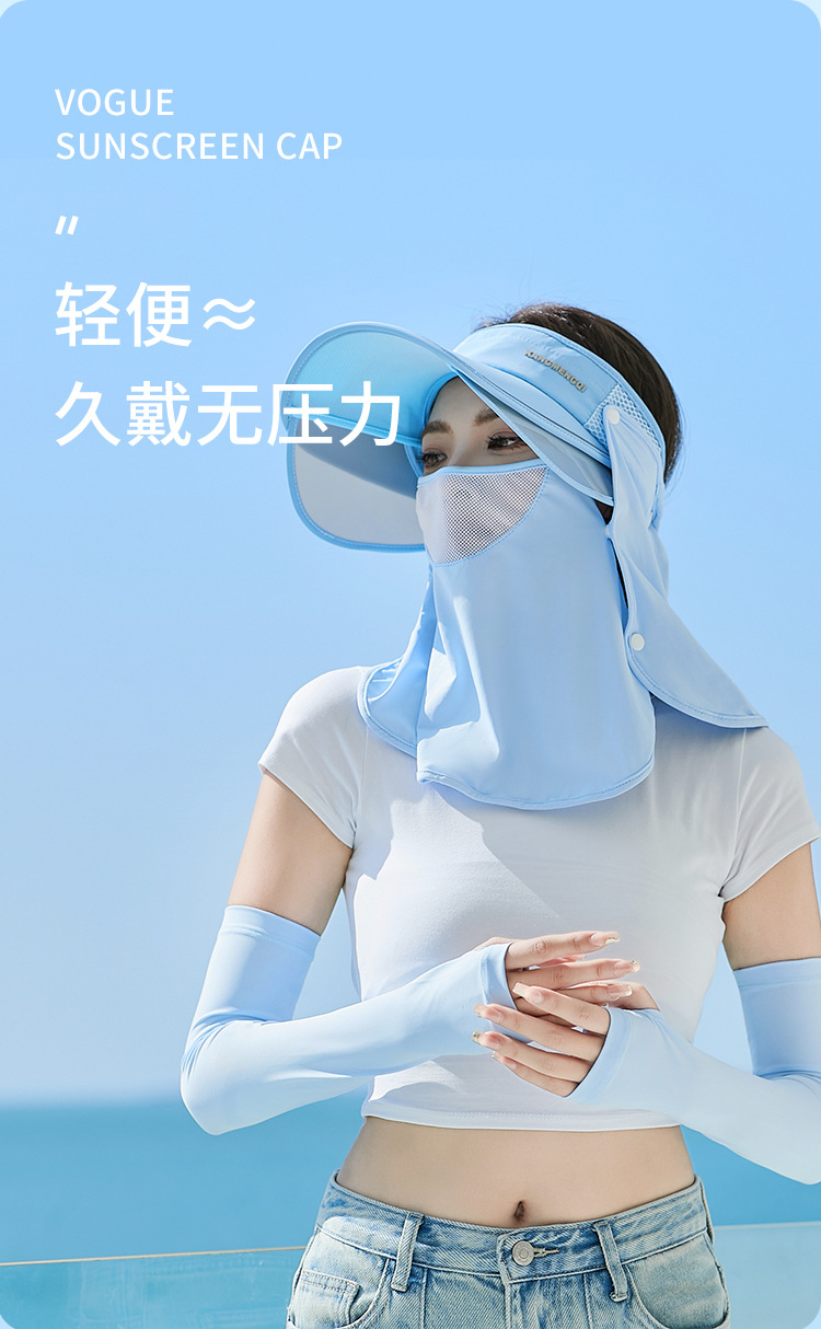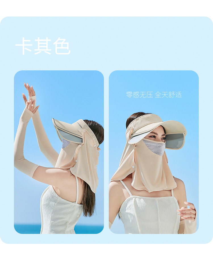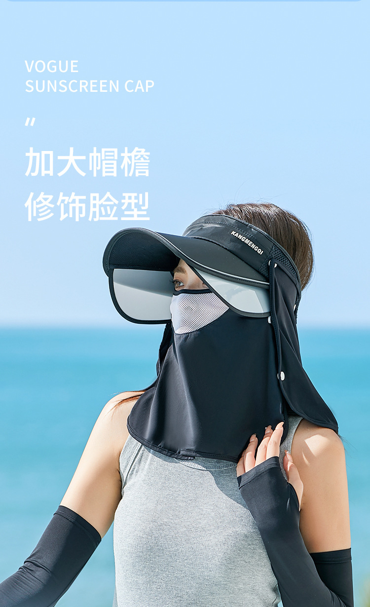 【一顶帽子!三重体验】空顶防晒帽女夏季户外骑车遮脸防紫外线遮阳帽防晒面罩大檐太阳帽,一体防晒设计,加大帽檐,修饰脸型。ry