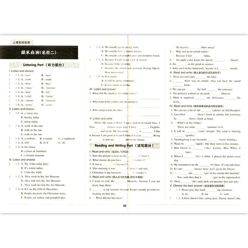 2022上海名校名卷 英语N版 5年级下册/五年级第二学期 与上海牛津版英语教材配套 单元测试卷期中期末满分冲刺卷 华东师范大学