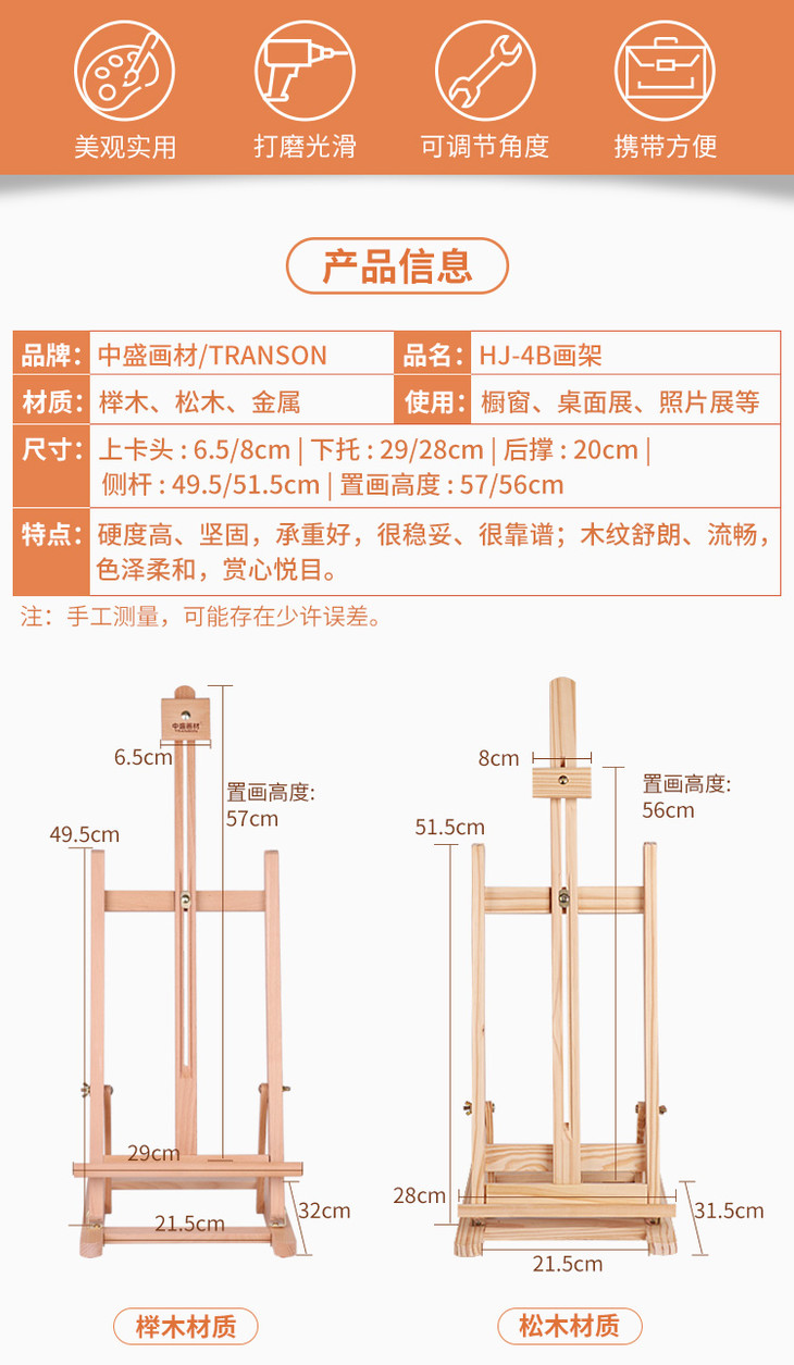 中盛桌面小台式升降木制油画架红榉木广告海报展示架 HJ-4B小画架
