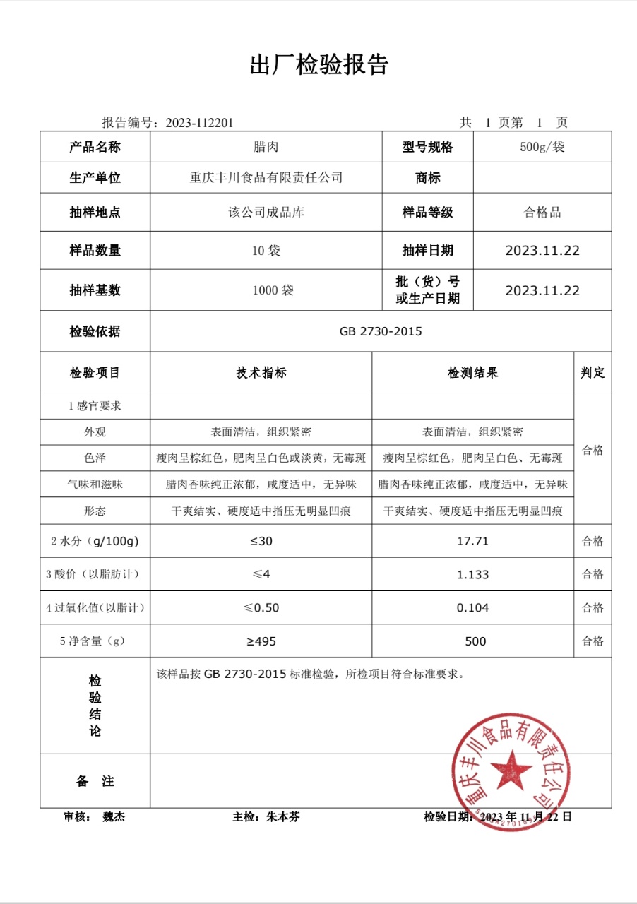 标准的加工厂,独特秘制的重庆风味,为大家提供安全放心美味的腊味,只做精品系列,香肠腊肉均采用2:8的肥瘦比,自有配方,不添加成品调味包,香肠选用前腿肉,肉质细腻嫩滑,腊肉选用精品五花,后腿肉,整块切肉,肉质紧实,谷糠反复炕干水份,柏料稍烟薰上色增香,熏制好的腊肉表里一致,煮熟切成片,透明发亮,吃起来味道醇香。