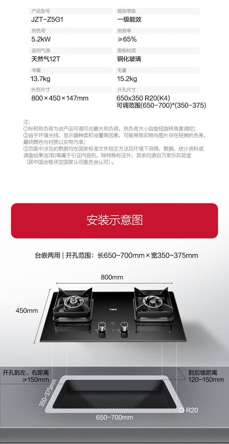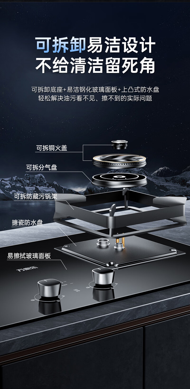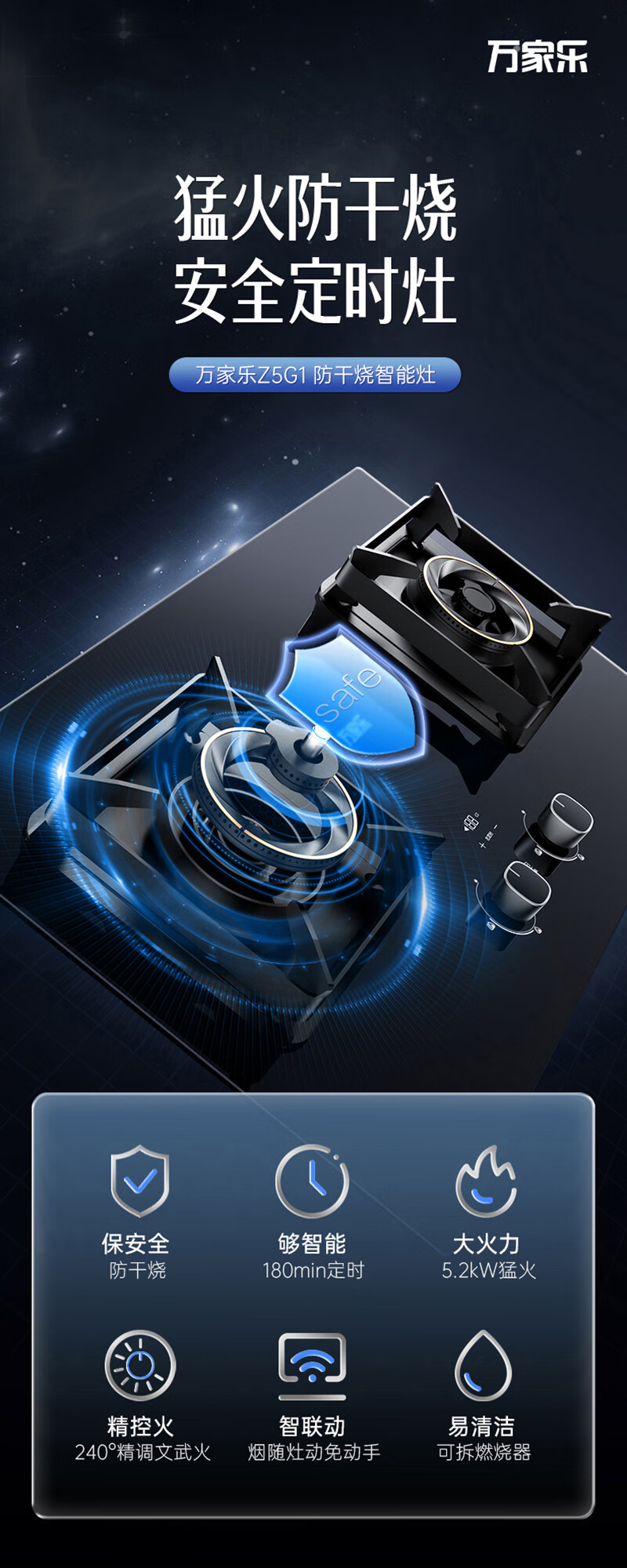 万家乐嵌入燃气灶 钢化玻璃 智能定时关火 智能防干烧 易清洁 高效猛火 5.2kw燃气灶(天然气)JZT-Z5G1