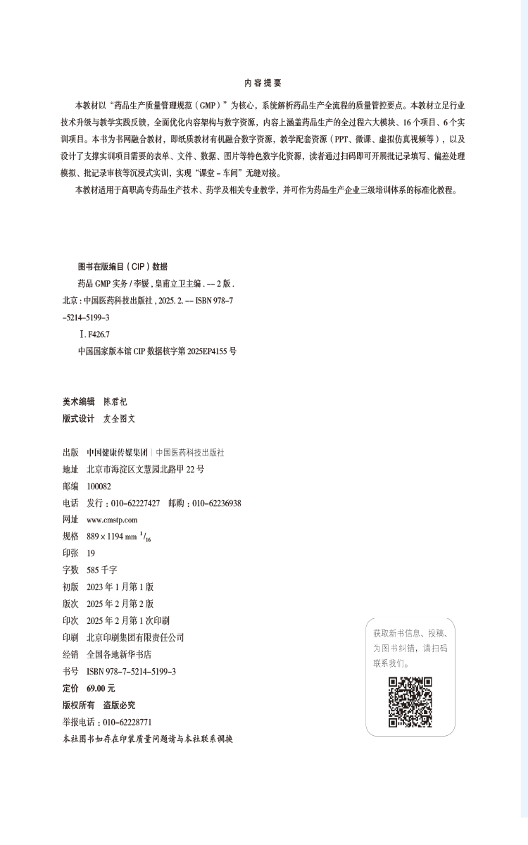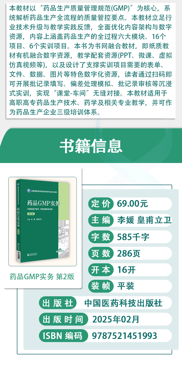 书名:药品GMP实务(第2版)(全国高职高专院校药学类专业核心教材)