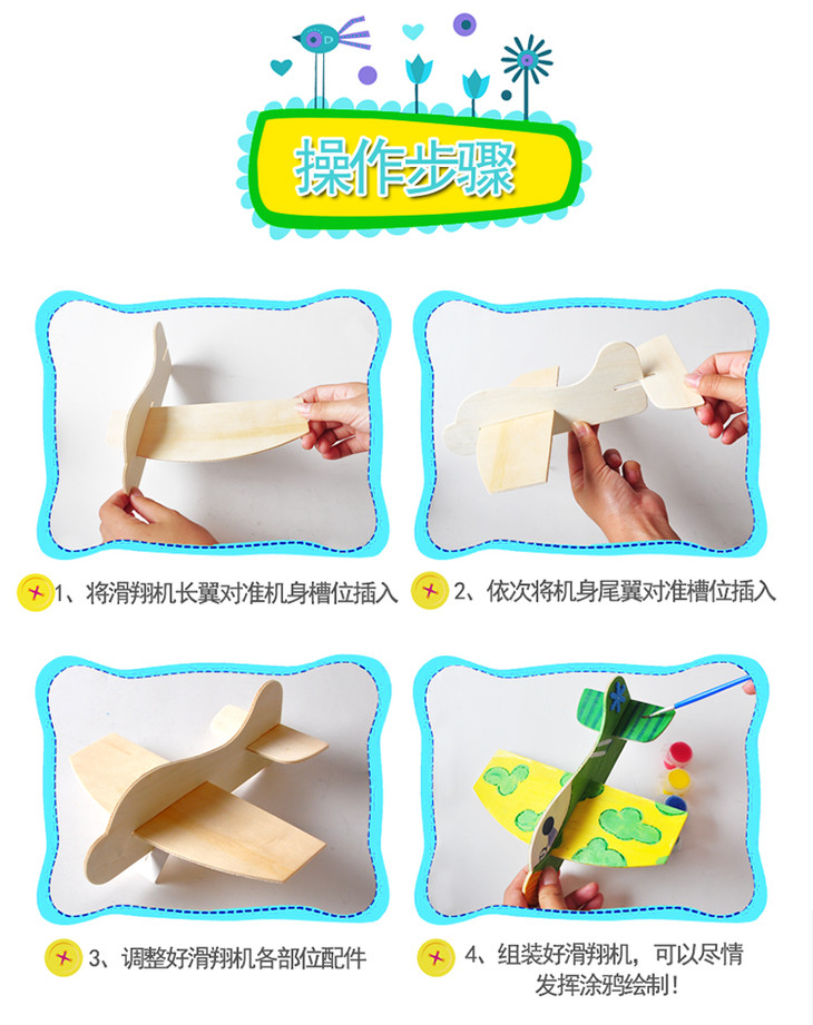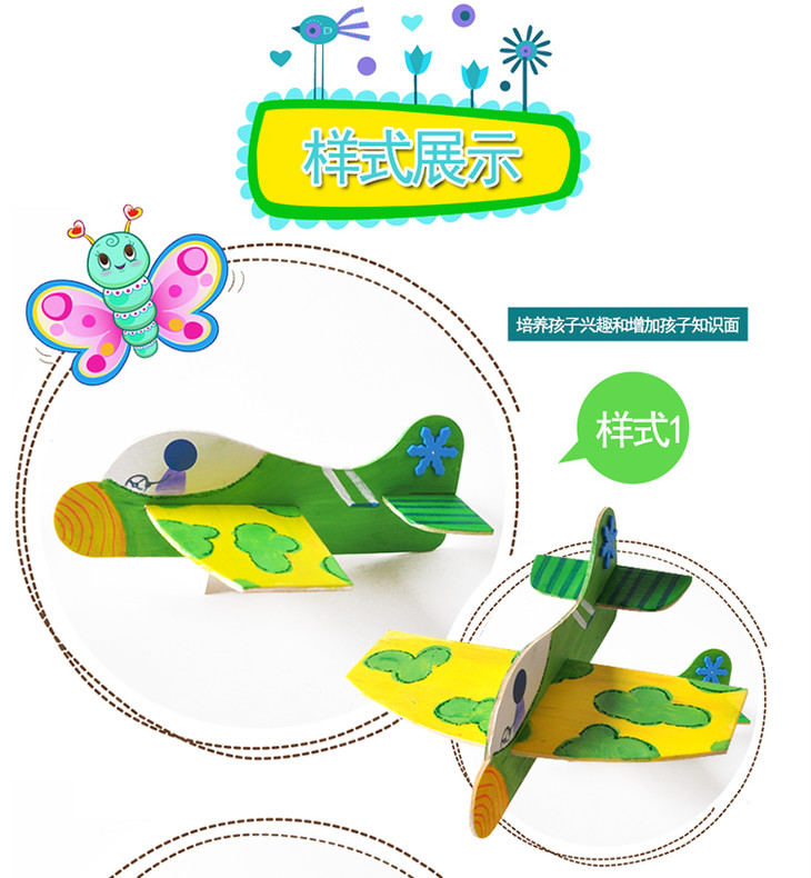 幼儿园课堂手工DIY创意手工,白胚木质飞机材料包