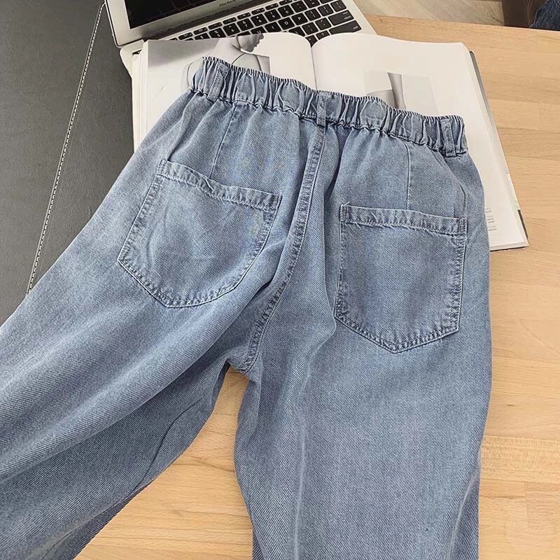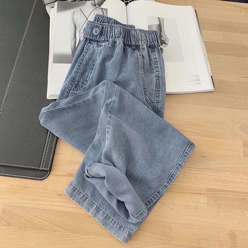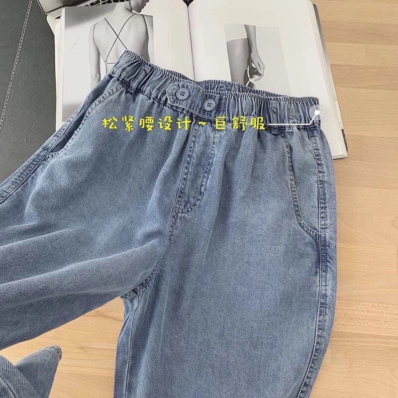 黛唯梵超薄牛仔裤女2022夏季松紧腰天丝宽松显瘦潮大码九分直筒老爹裤子