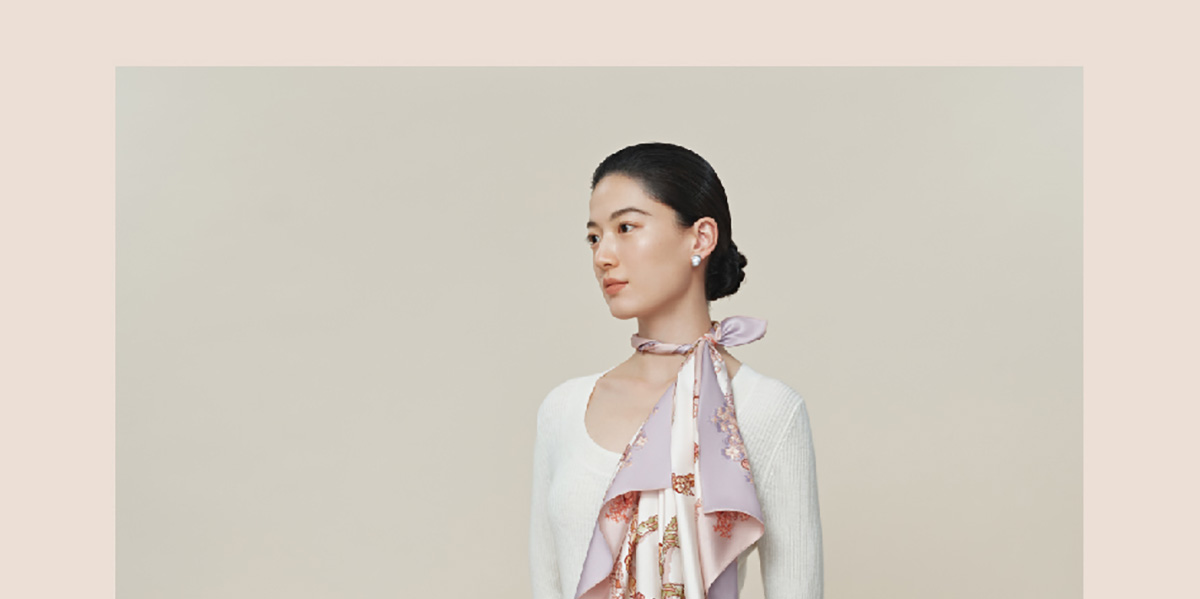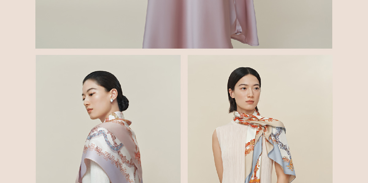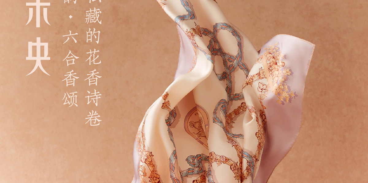 万事利“四时景”88厘米双面印花真丝大方巾