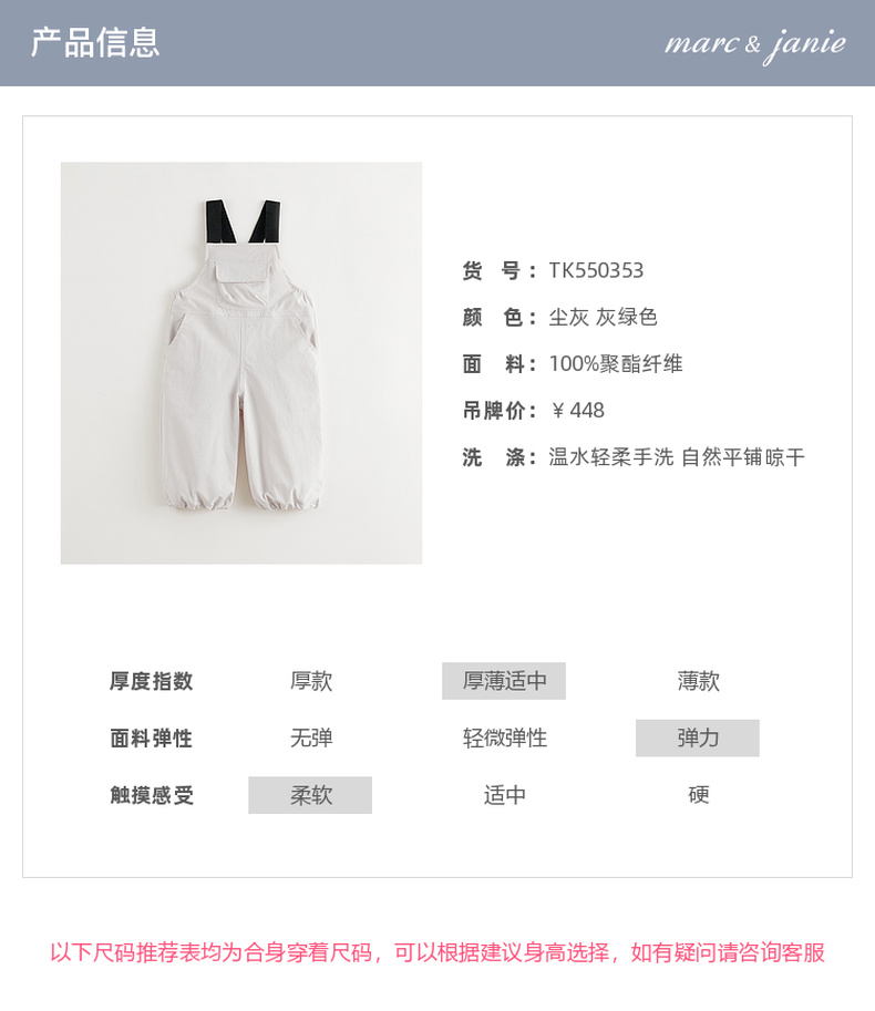 【速干透气】马克珍妮男童轻弹背带裤宝宝裤子2025春装新款550353
