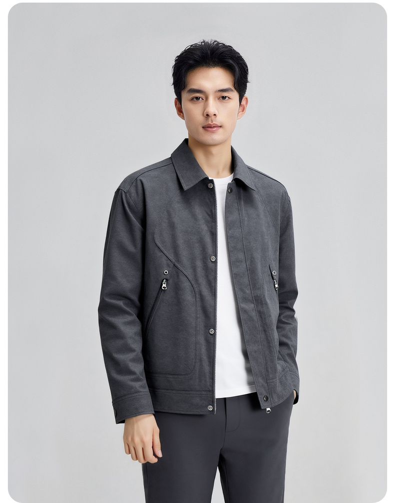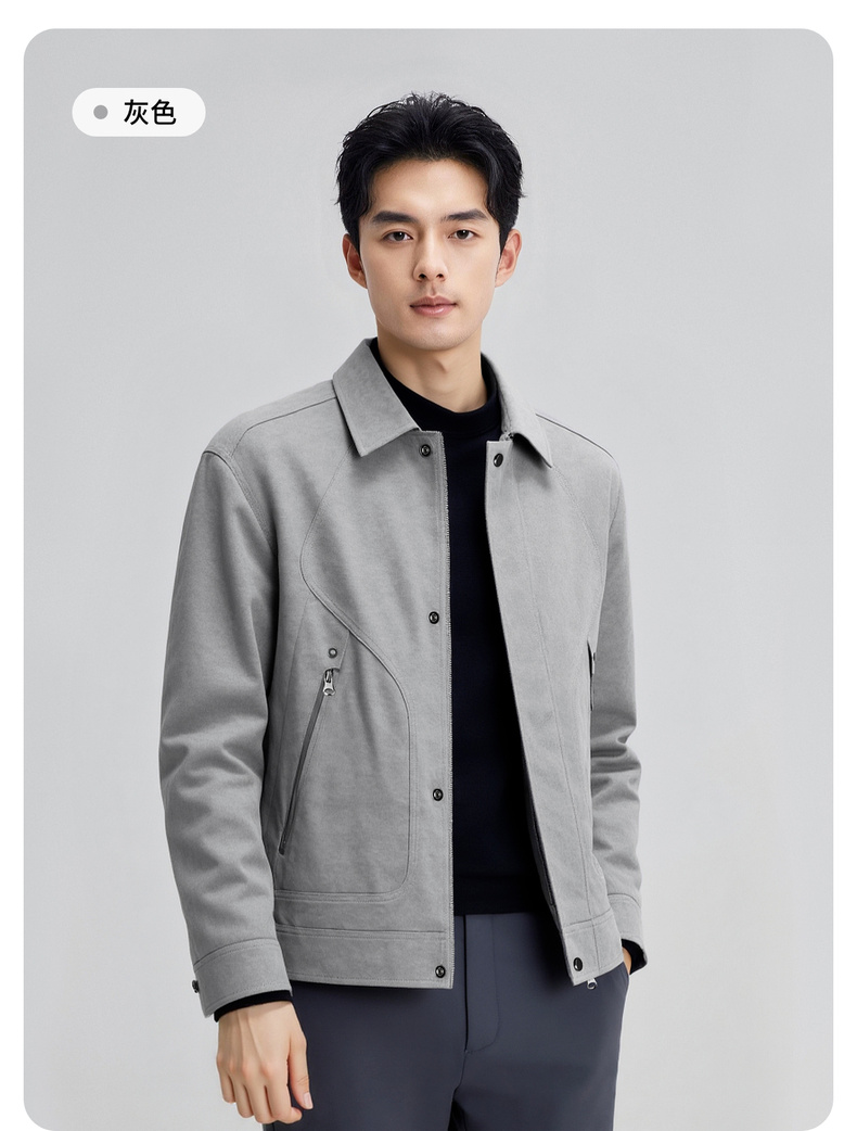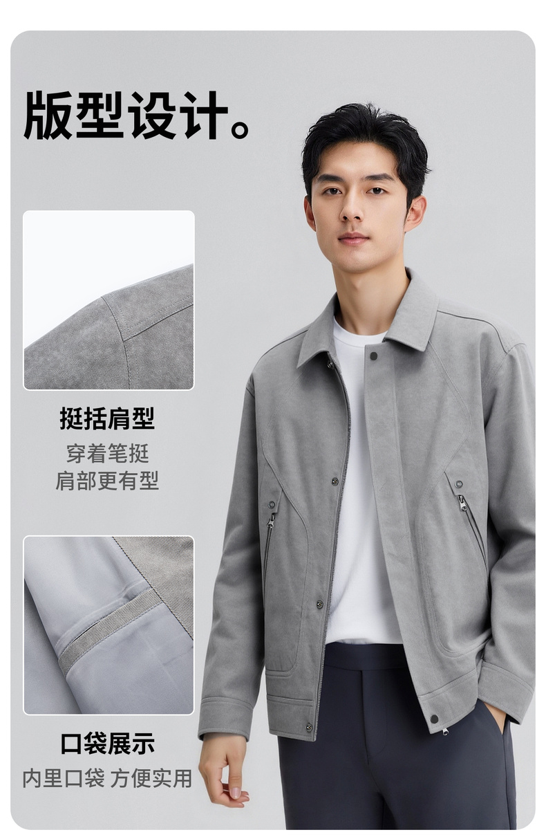 【潮流复古】圣得西男士翻领夹克2025年秋季新款易打理休闲风外套