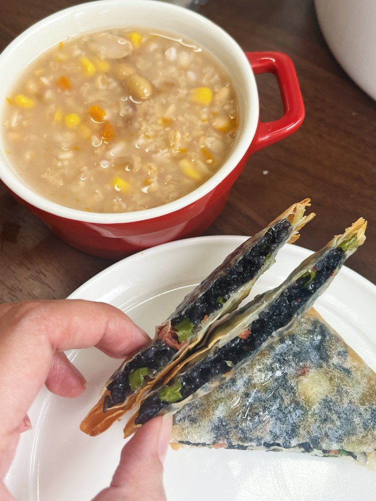 江浙特色小吃【山子家五彩腊肠和乌米豇豆饼】外酥里糯快手早餐速食江苏常州特色地道小吃,老底子的味道,配料干净,0添加,老人小孩都可以放心食用的健康早点。经典五彩腊肠和乌米豇豆饼两种口味可选