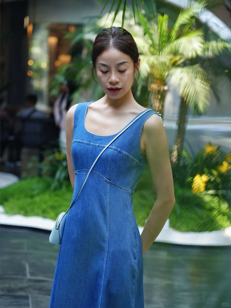 小禾同款东方蓝蝴蝶骨U领约会必杀,收省连衣裙