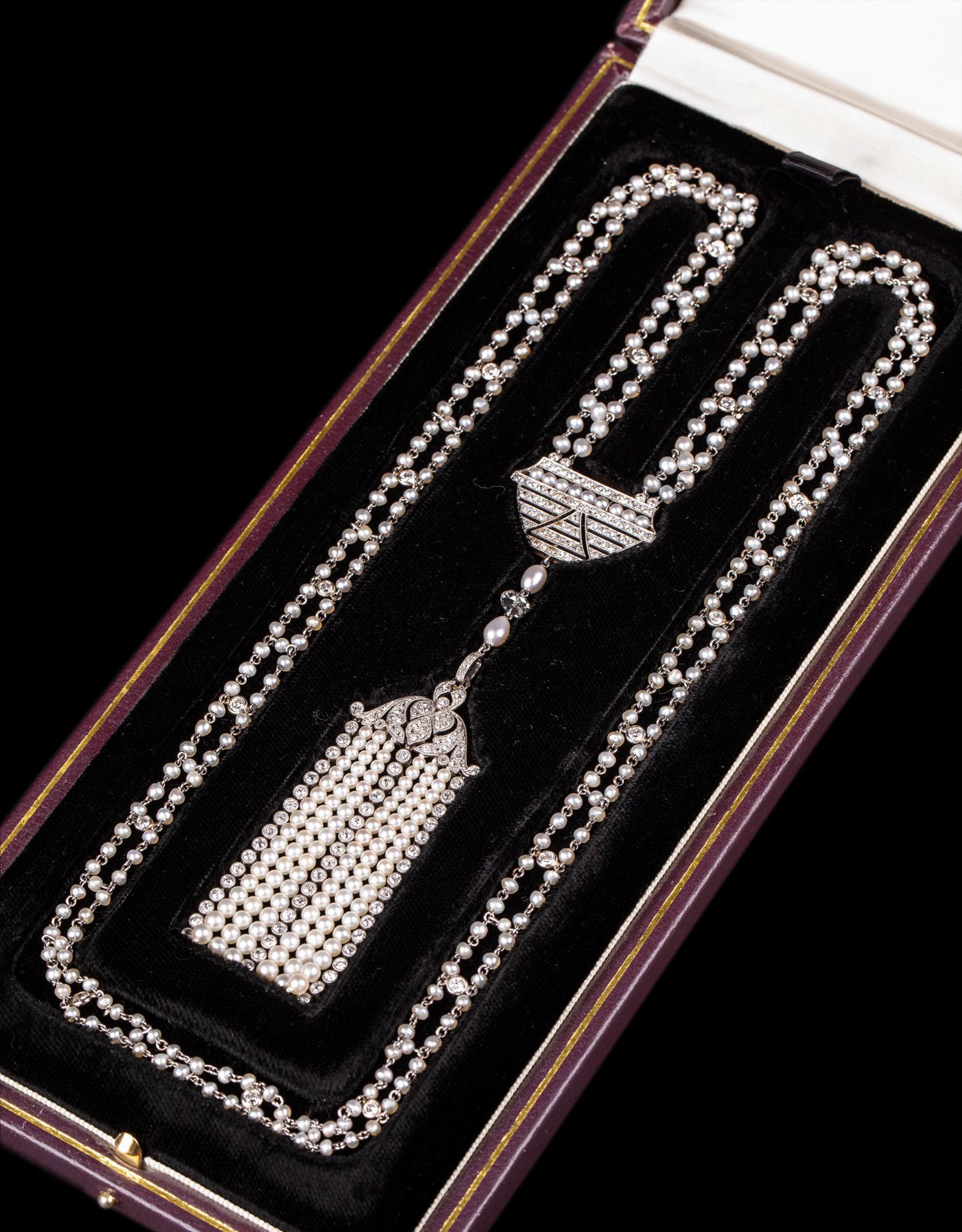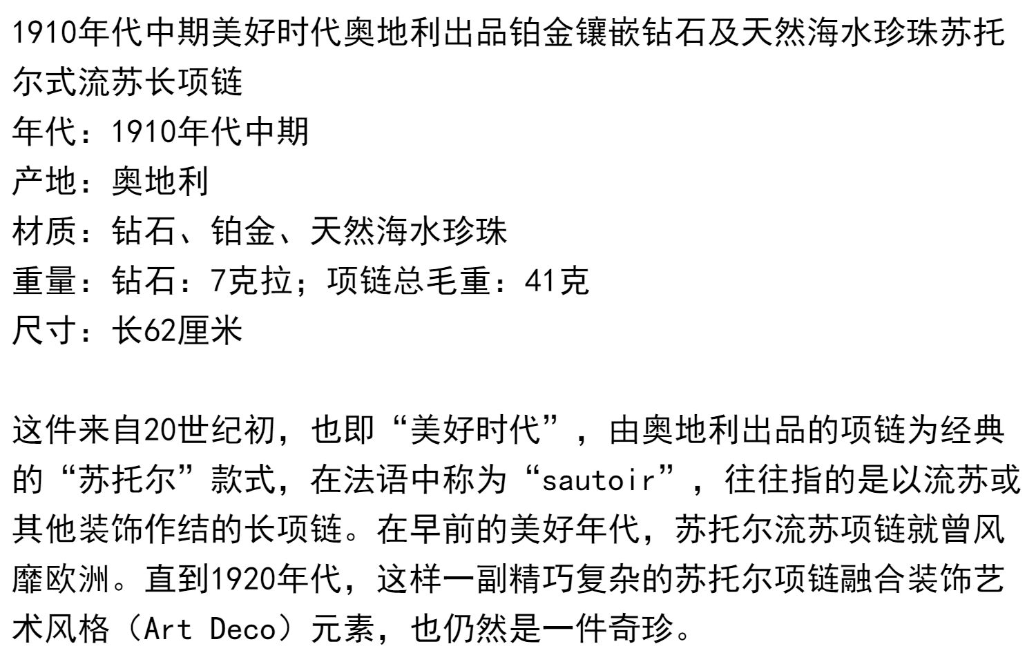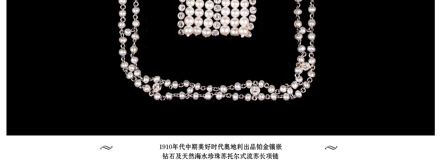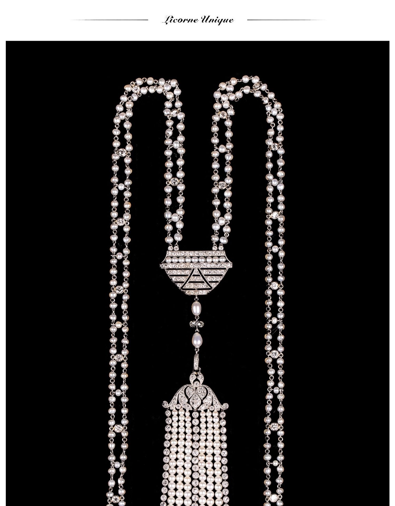 独角鹿西洋古董首饰铂金镶嵌钻石天然海水珍珠苏托尔流苏长项链