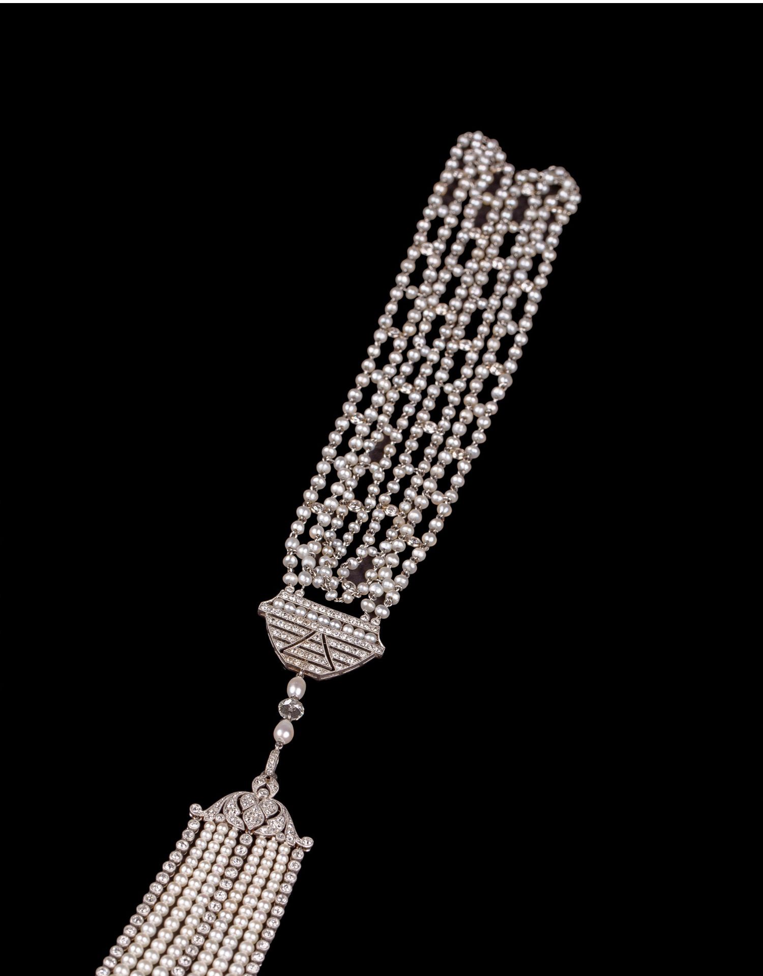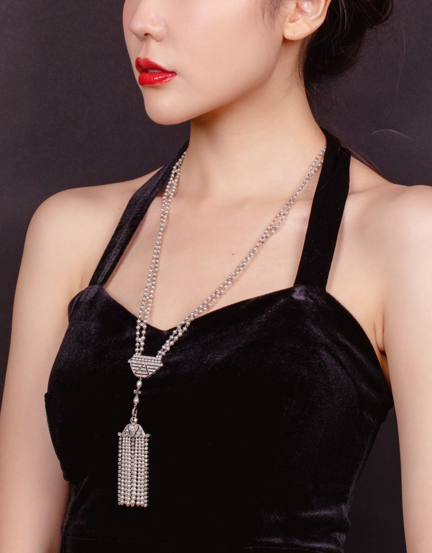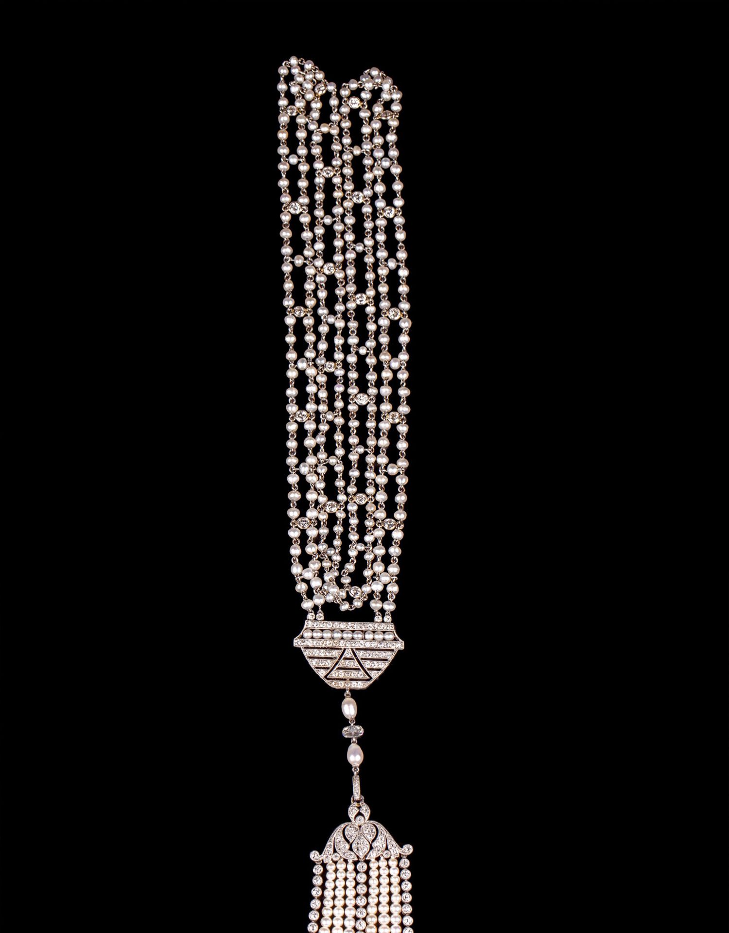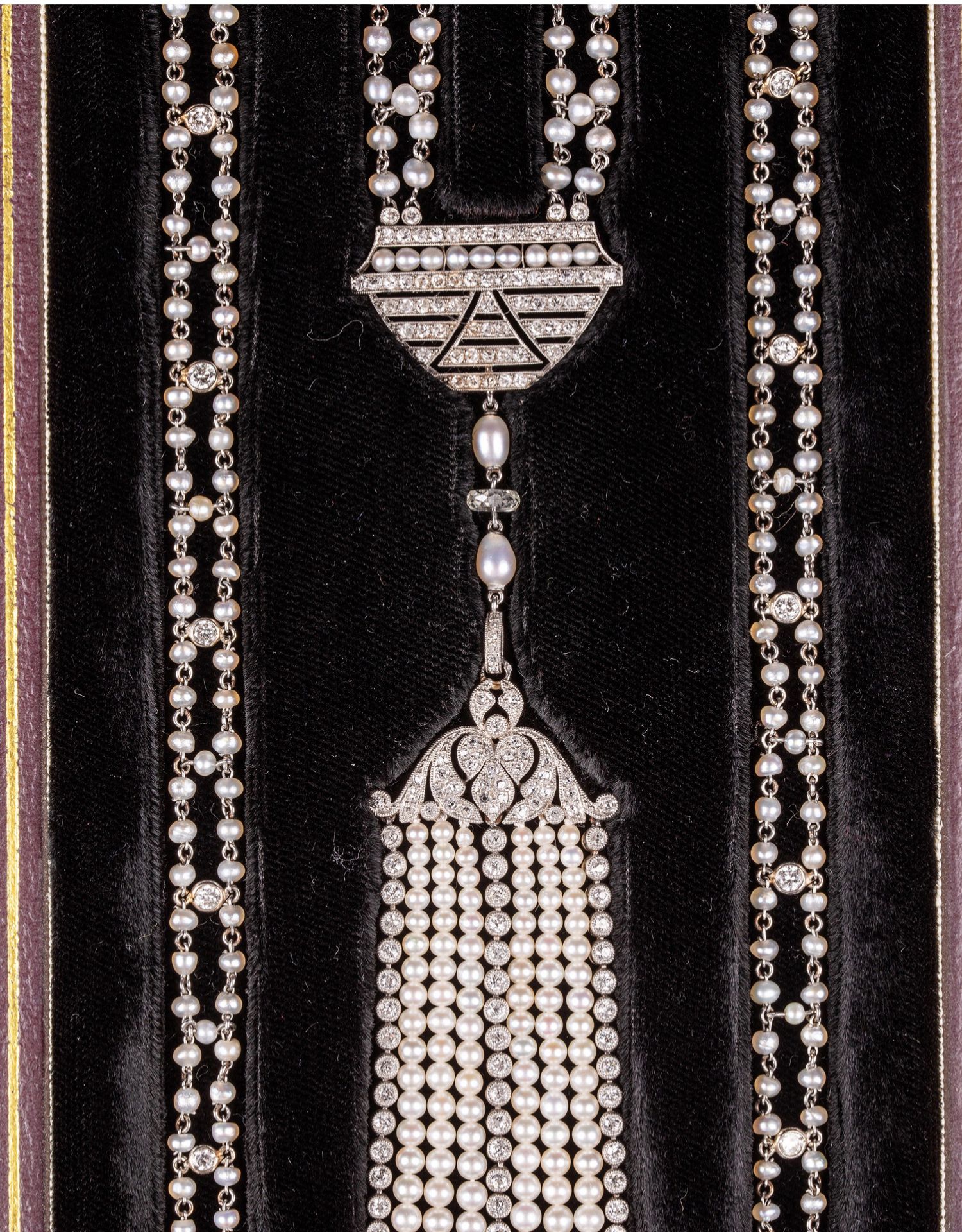 独角鹿西洋古董首饰铂金镶嵌钻石天然海水珍珠苏托尔流苏长项链