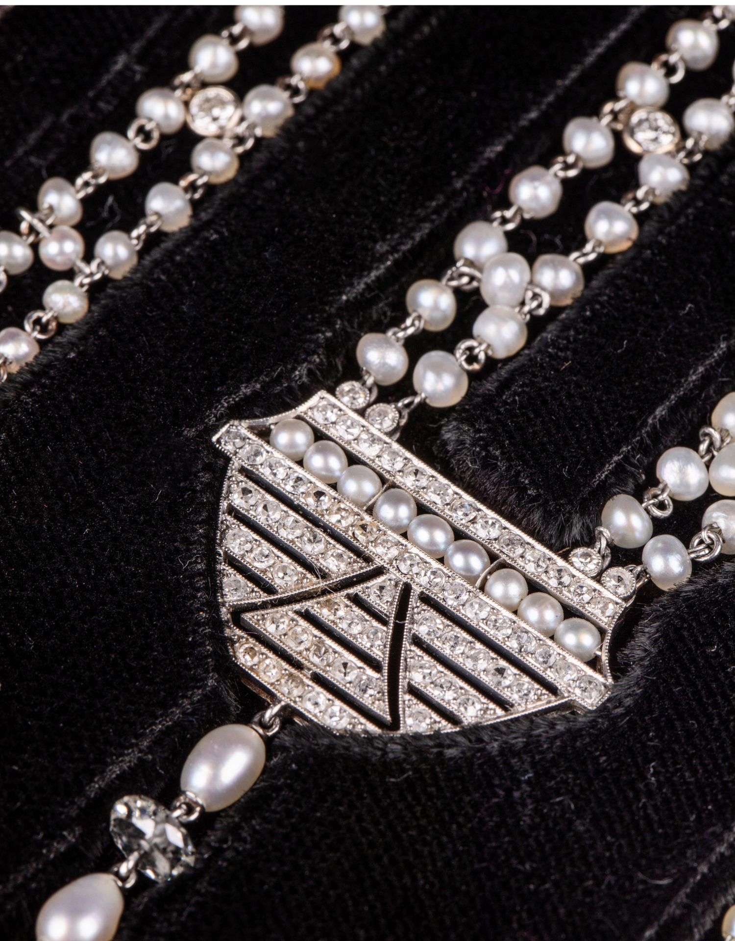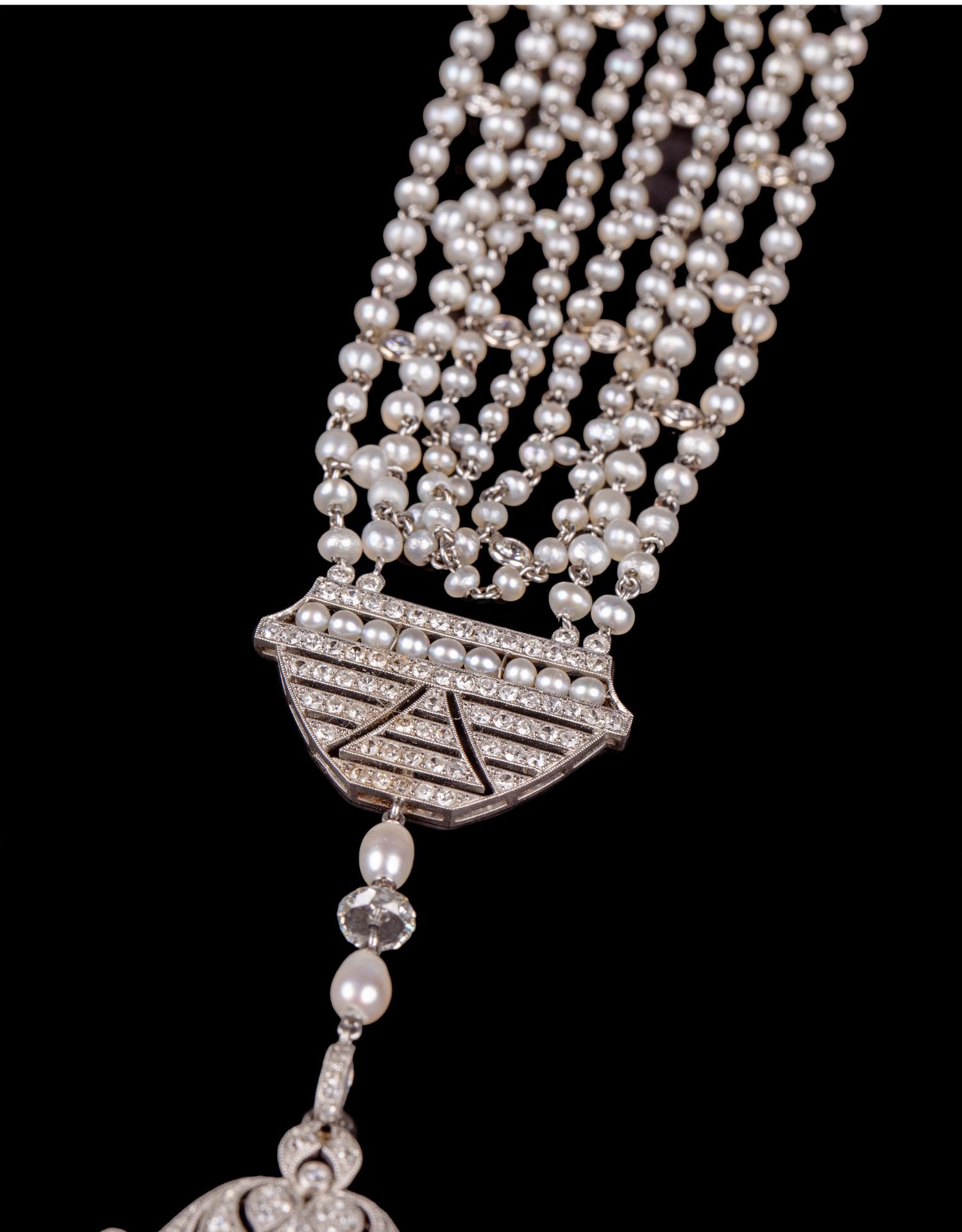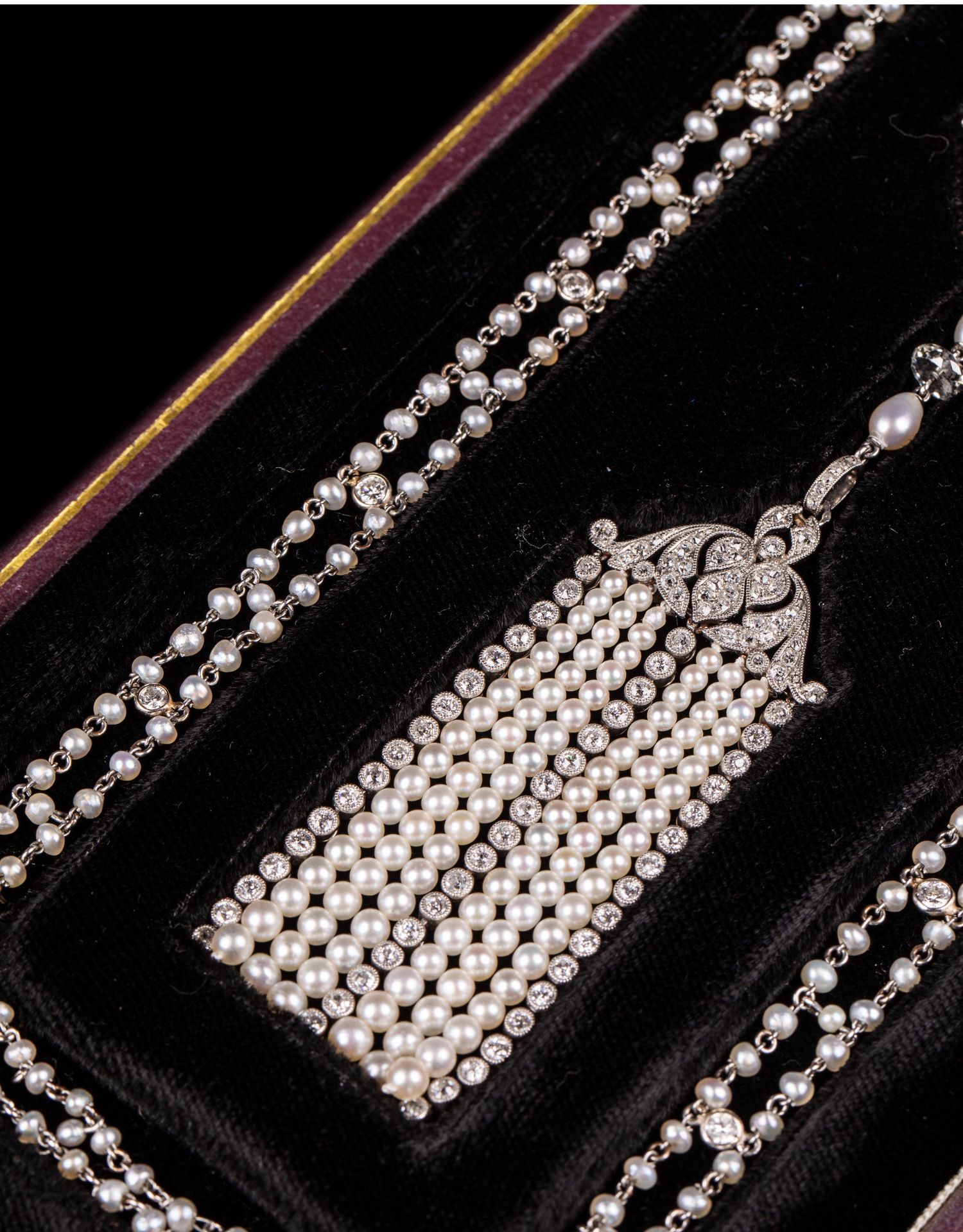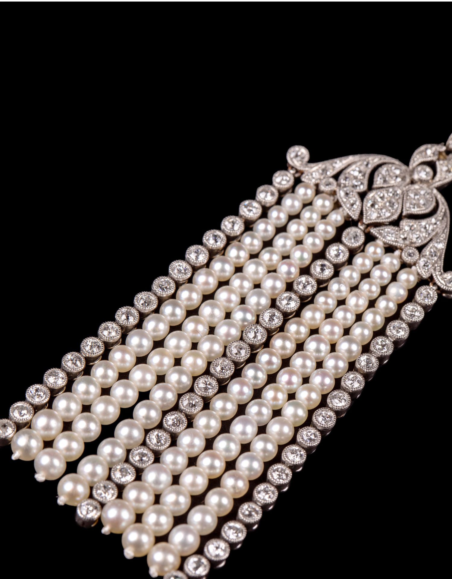 独角鹿西洋古董首饰铂金镶嵌钻石天然海水珍珠苏托尔流苏长项链