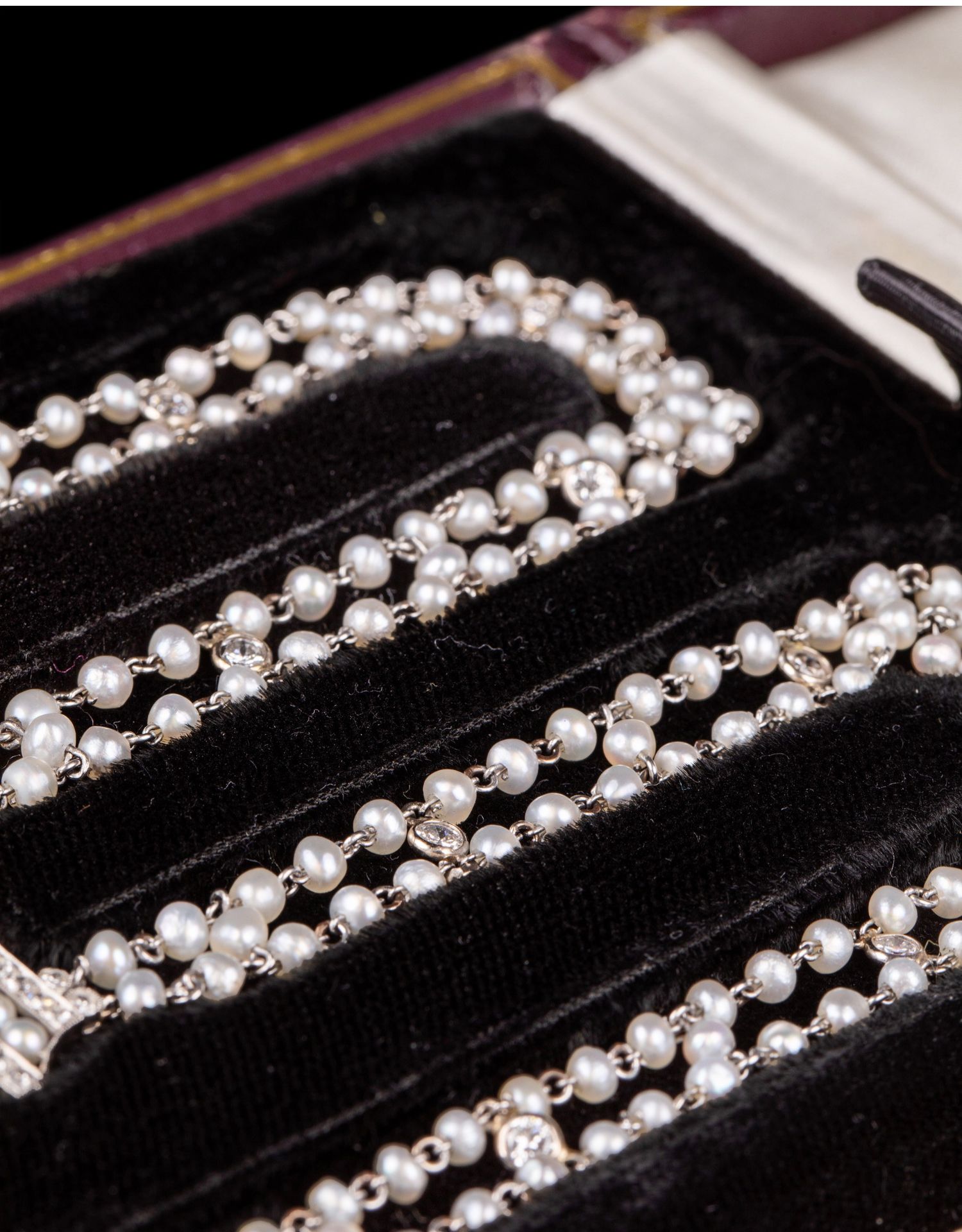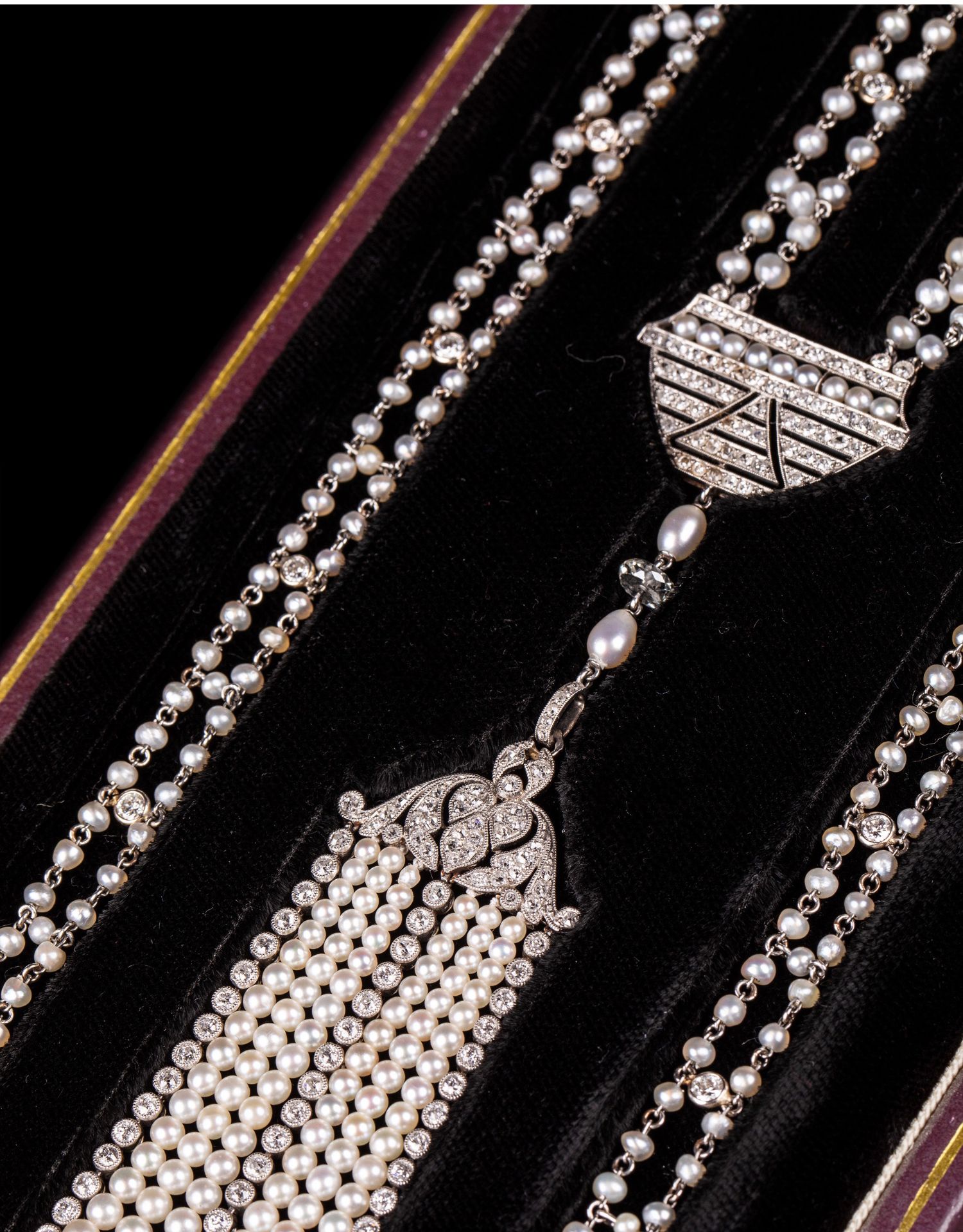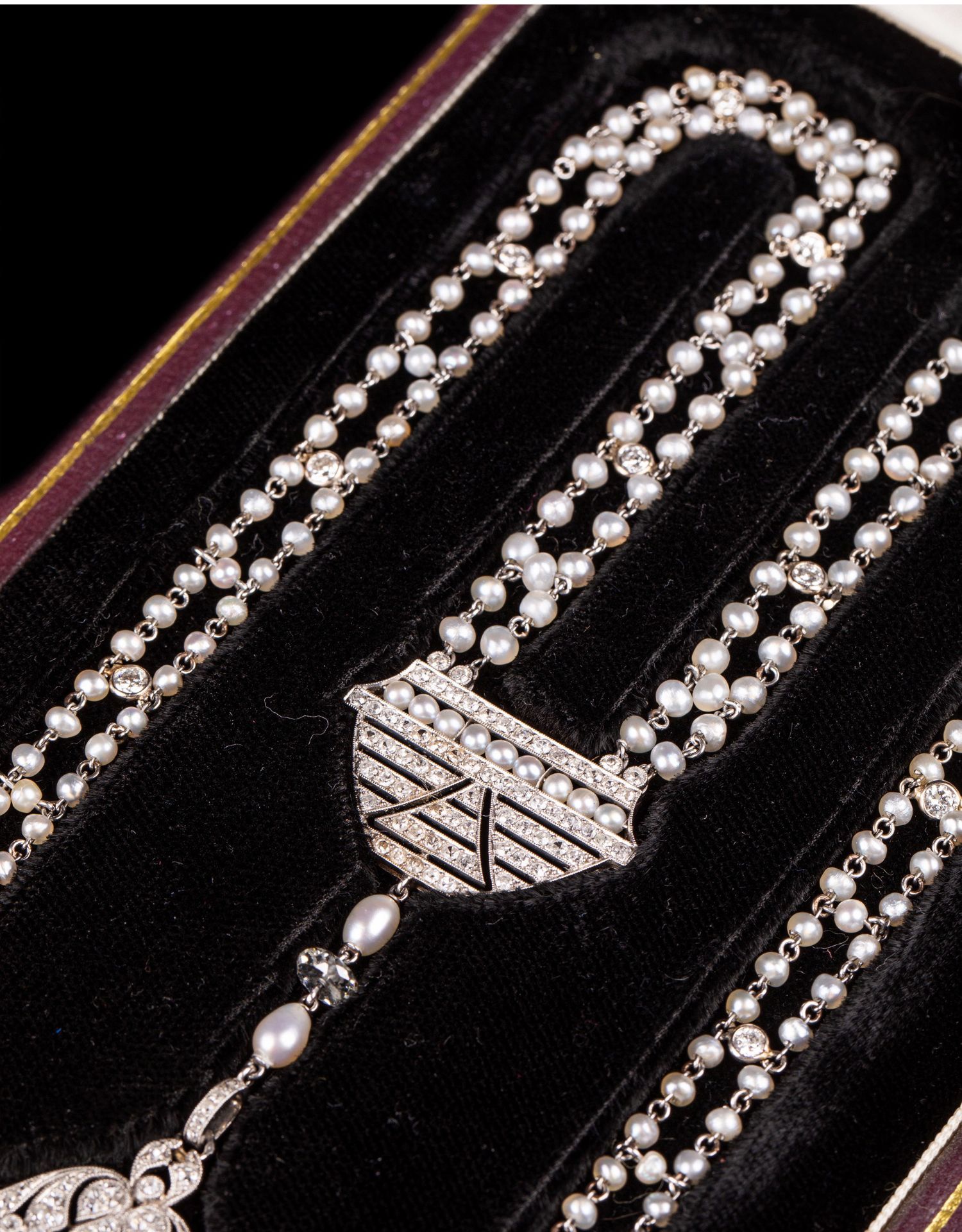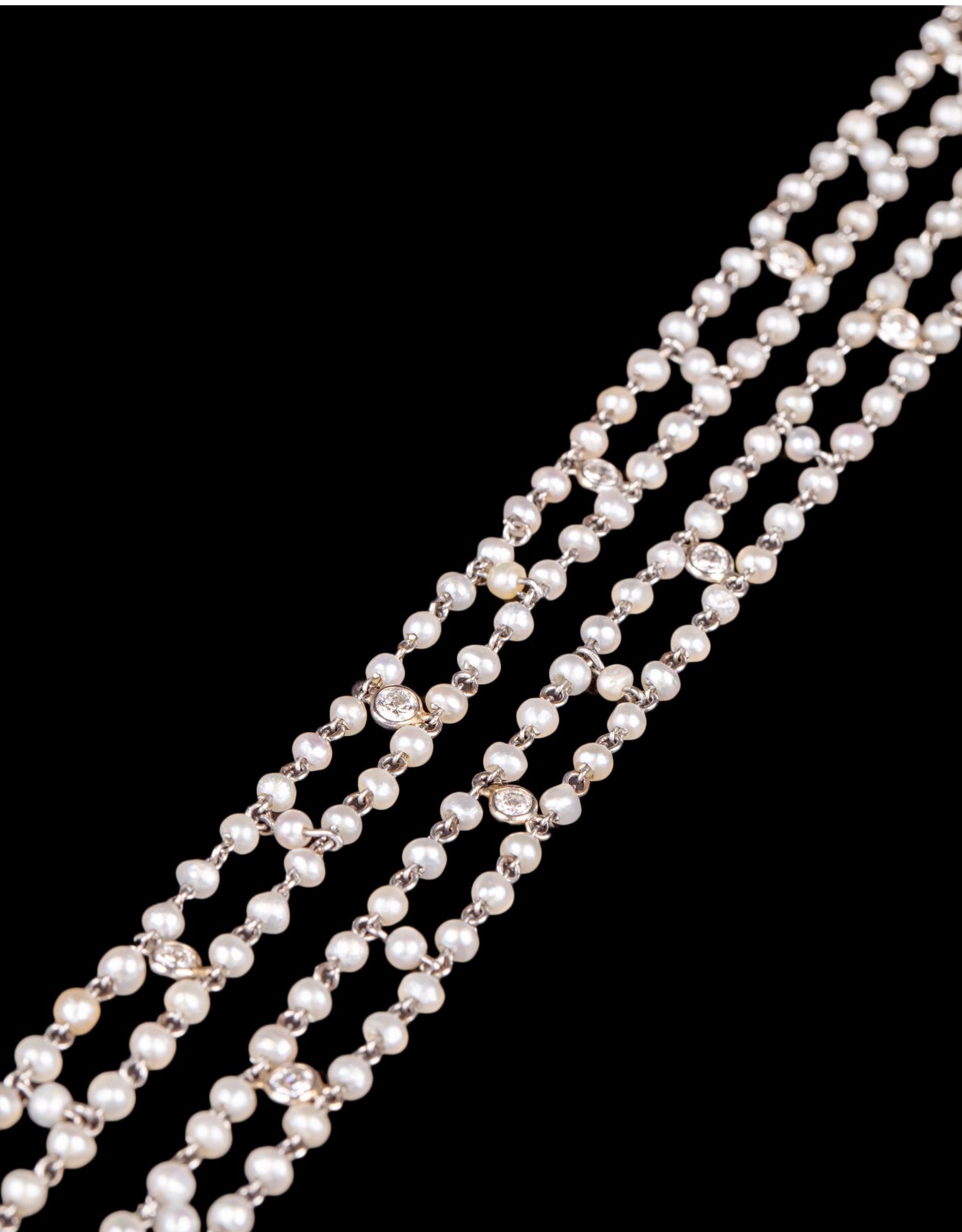 独角鹿西洋古董首饰铂金镶嵌钻石天然海水珍珠苏托尔流苏长项链