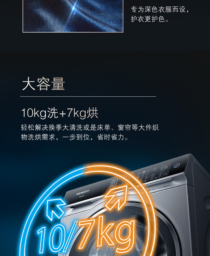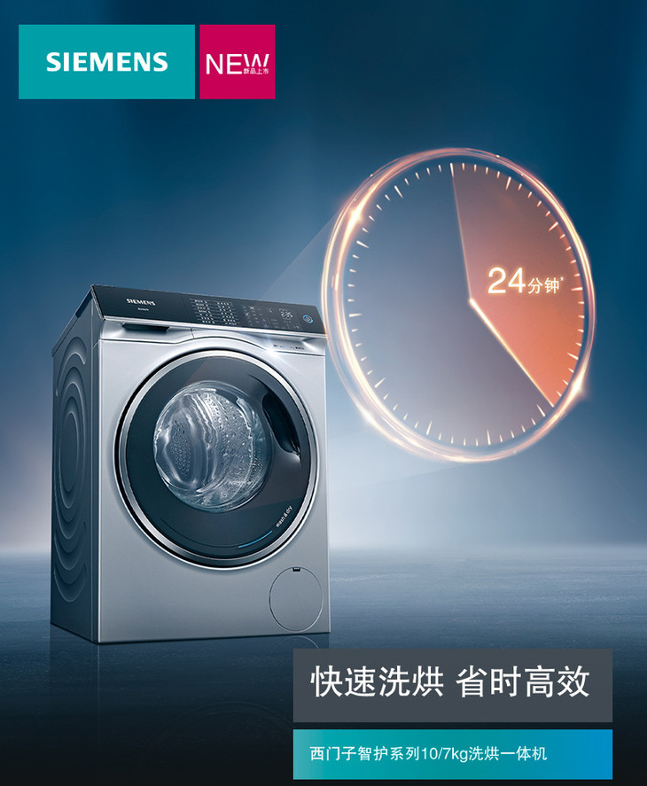 西门子(SIEMENS)(252086)10公斤洗烘一体全自动变频滚筒洗烘洗衣机 无水祛味蒸汽护理热风除菌WD14U5X8HW