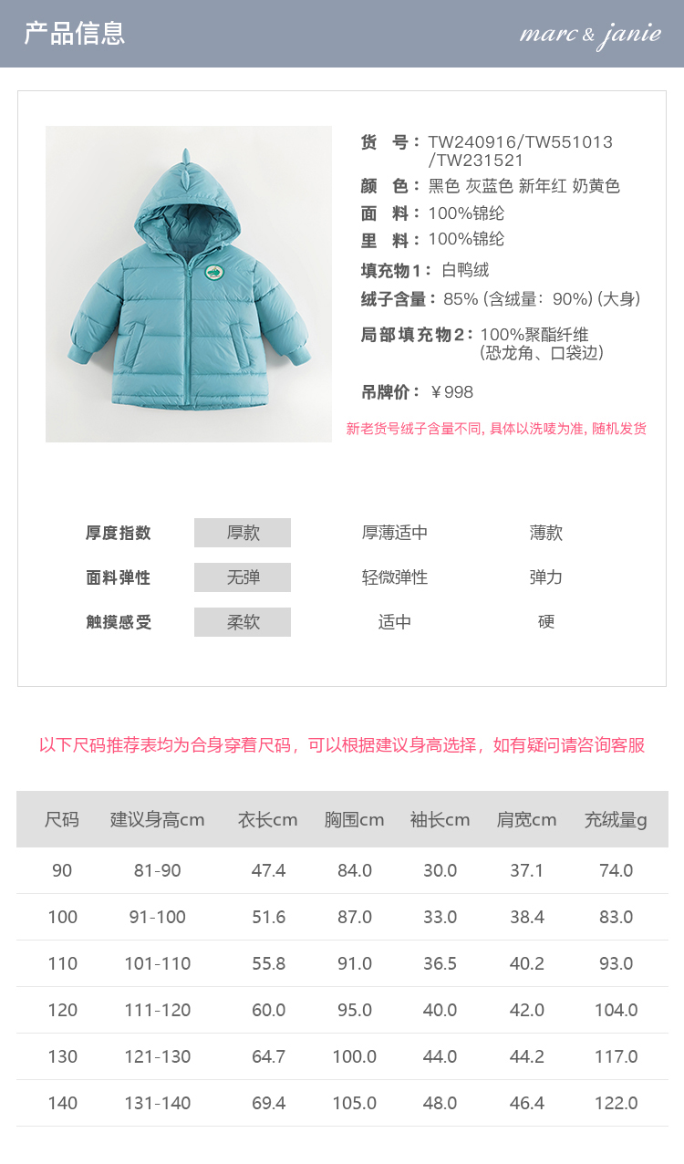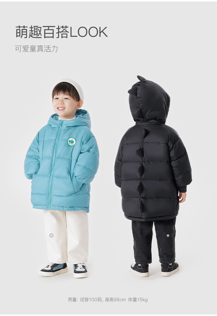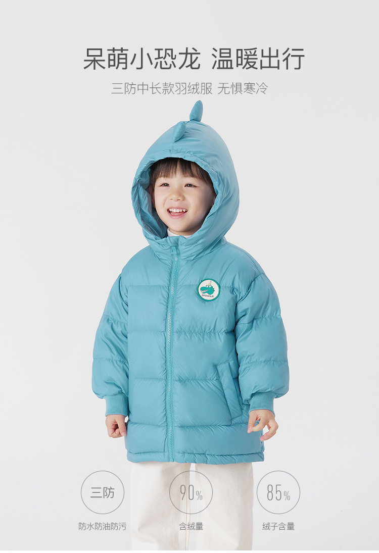 【三防】马克珍妮男童小恐龙加厚保暖中长款羽绒服冬装新款240916/551013