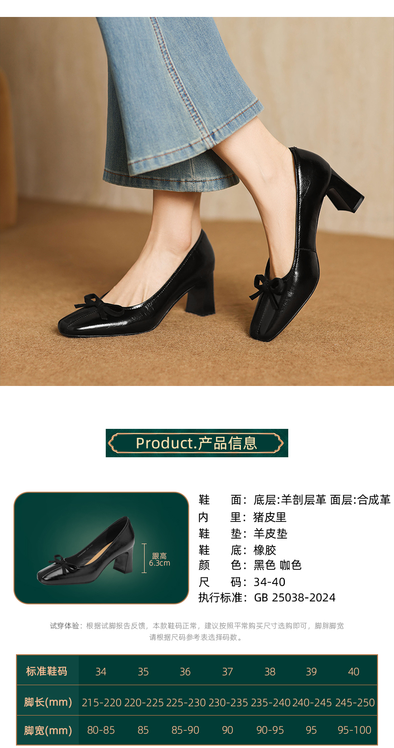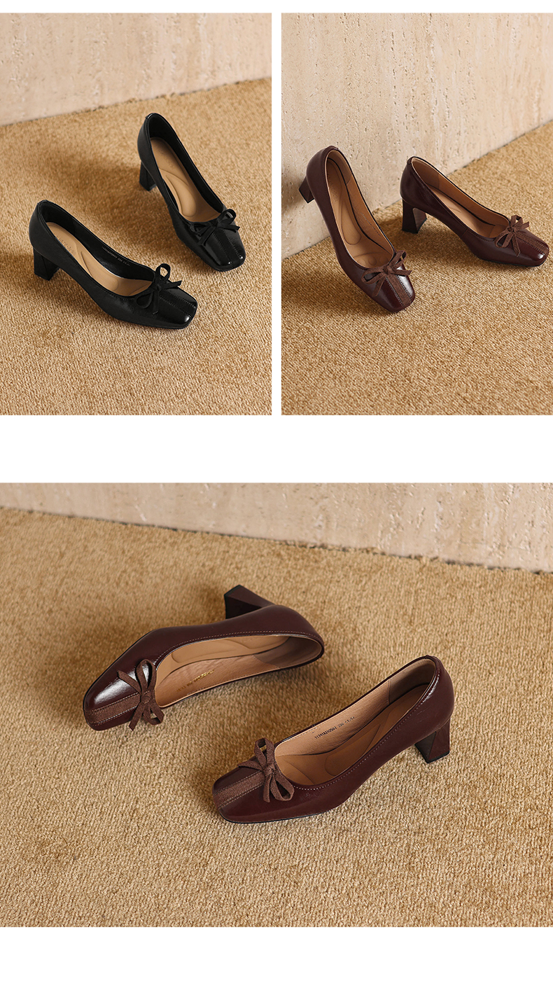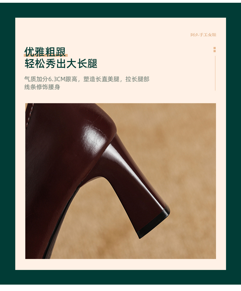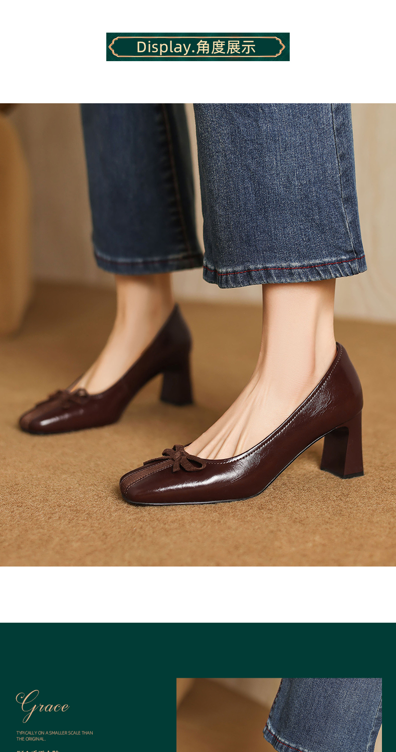 阿么手工女鞋蝴蝶结浅口一脚蹬方头单鞋新款复古优雅高跟鞋6.3CM