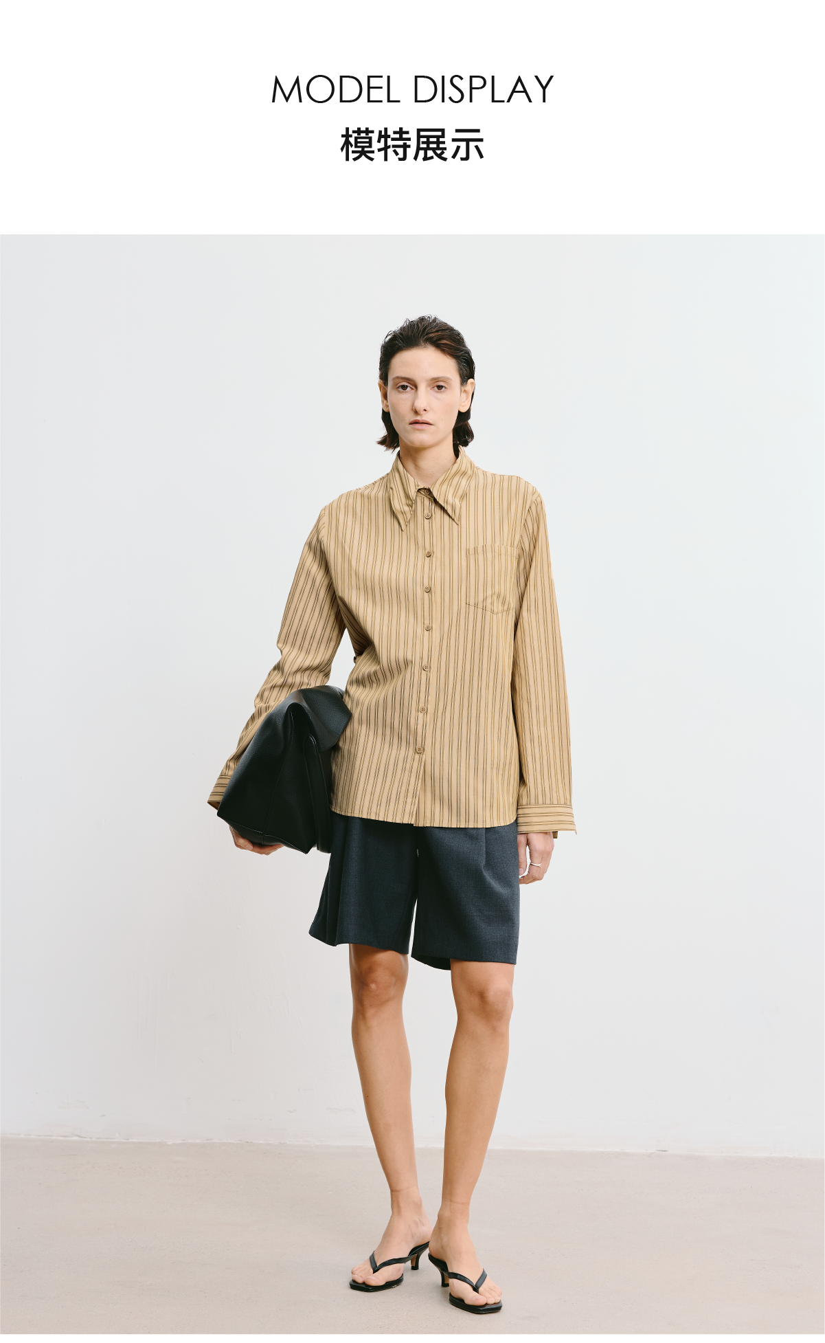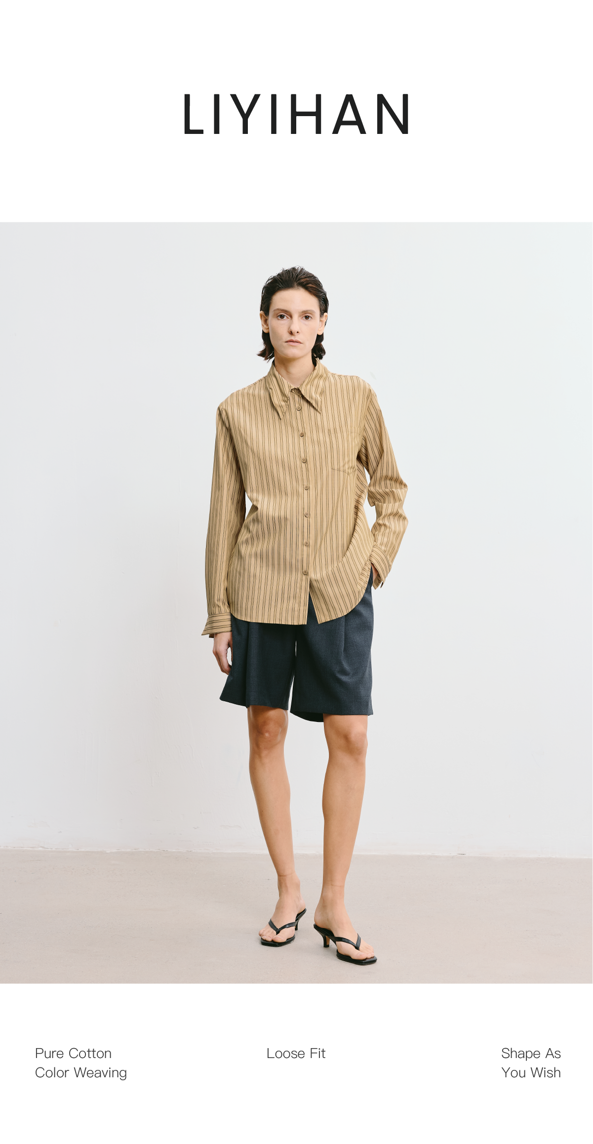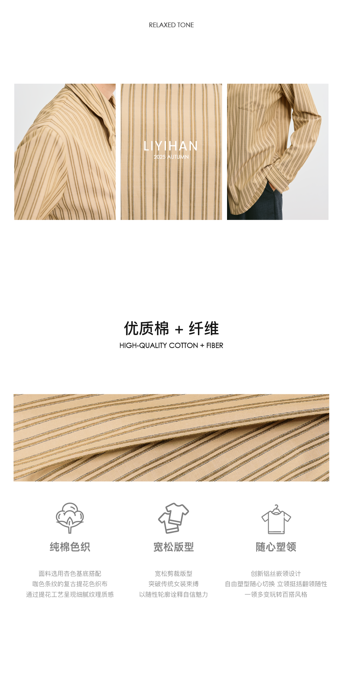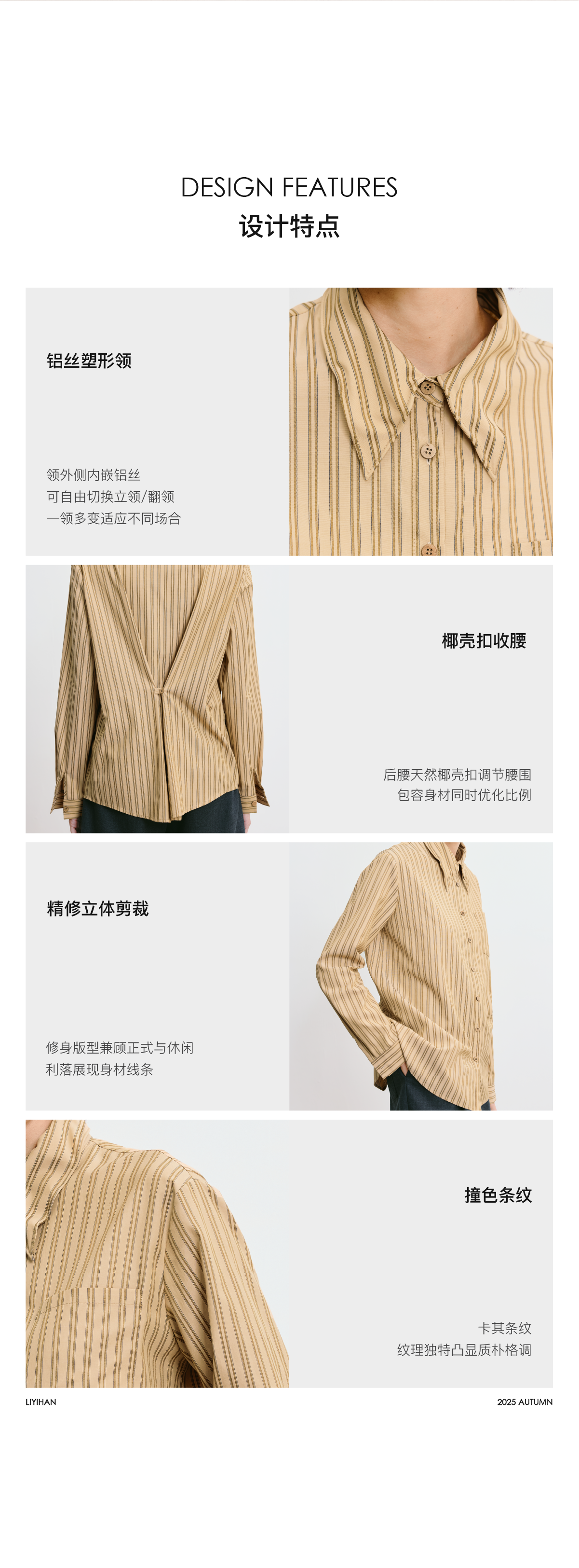 LIYIHAN 2025秋季新款职场通勤条纹衬衫卡其色女衬衣小众设计感