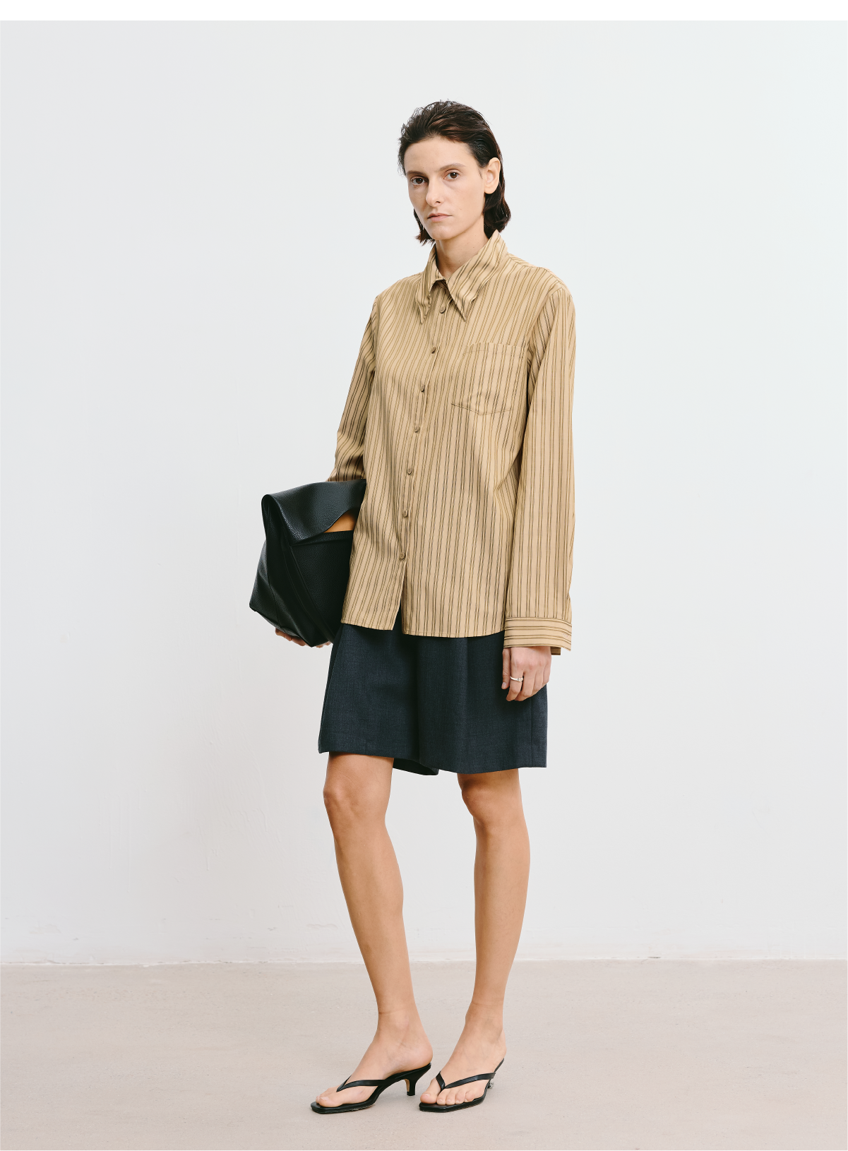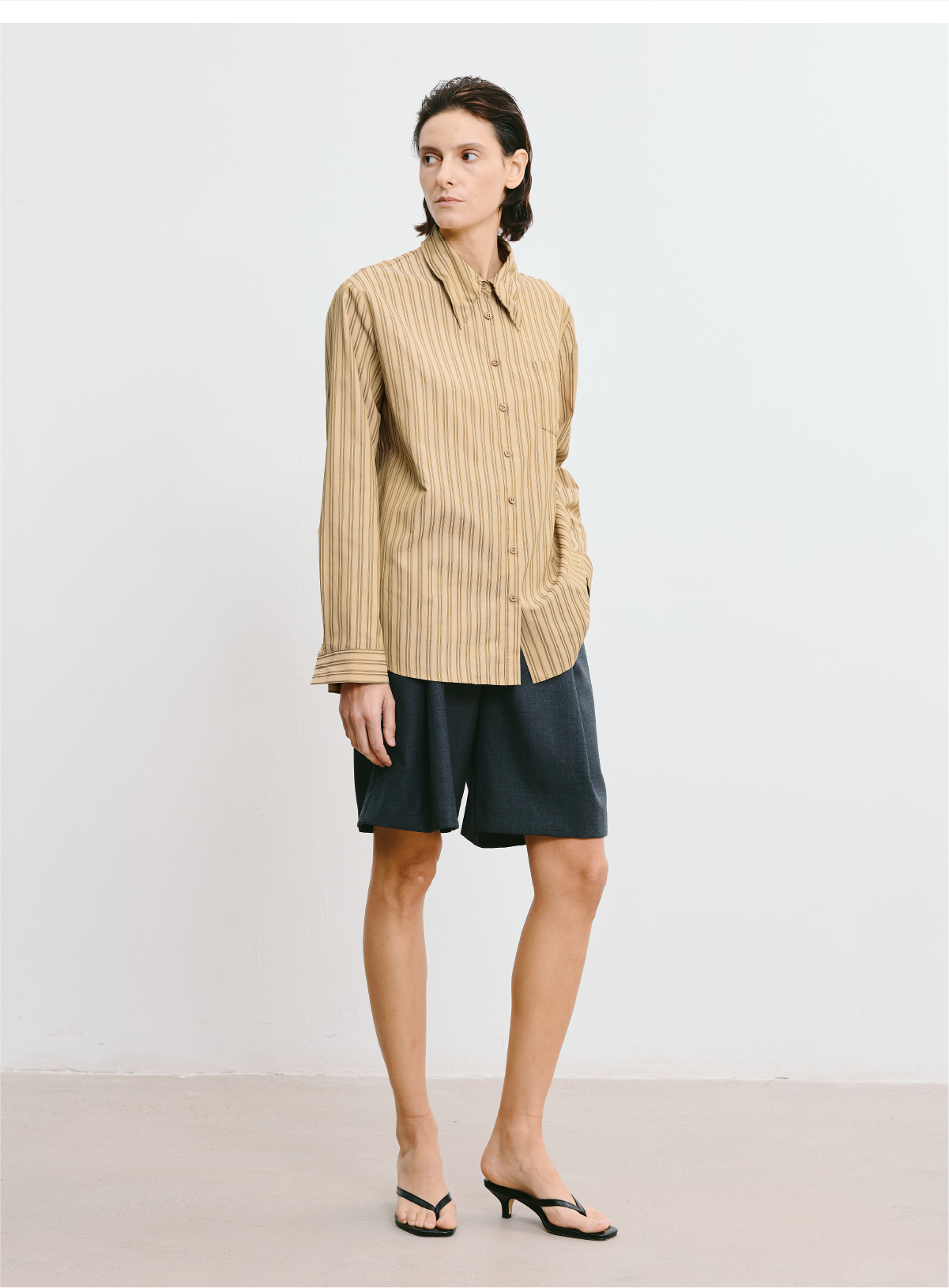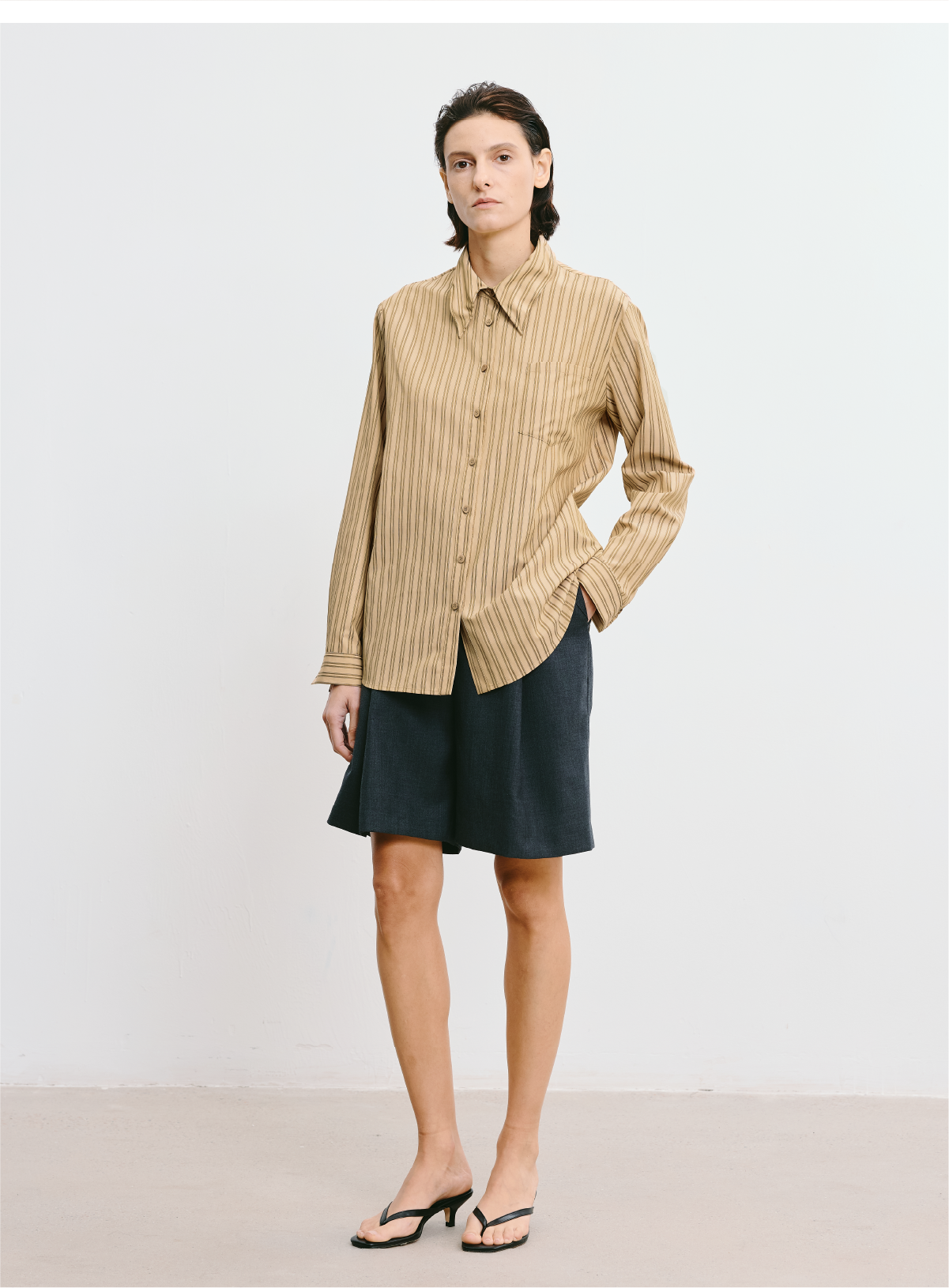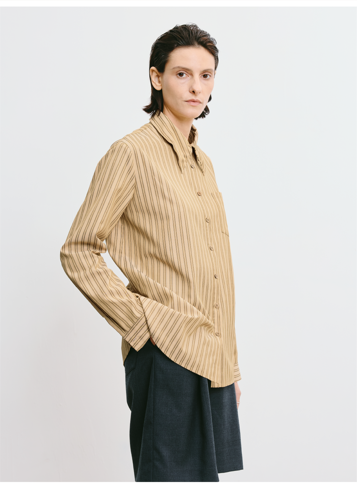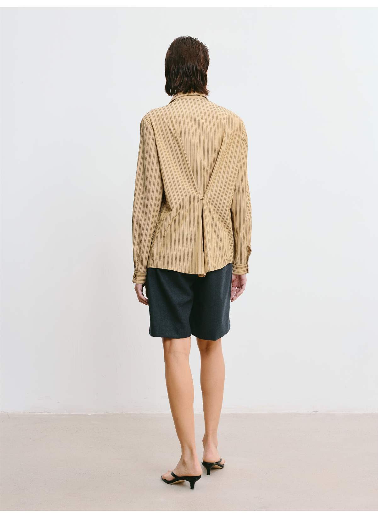 LIYIHAN 2025秋季新款职场通勤条纹衬衫卡其色女衬衣小众设计感