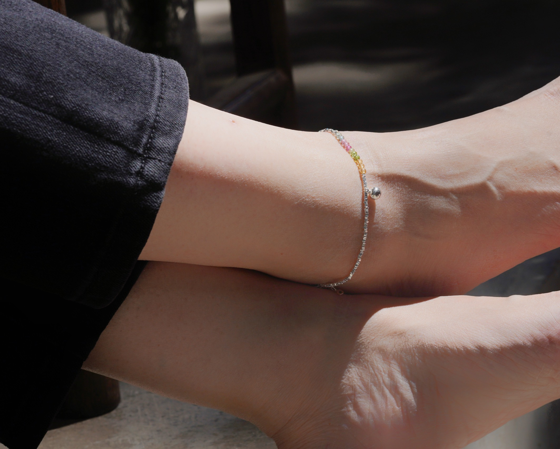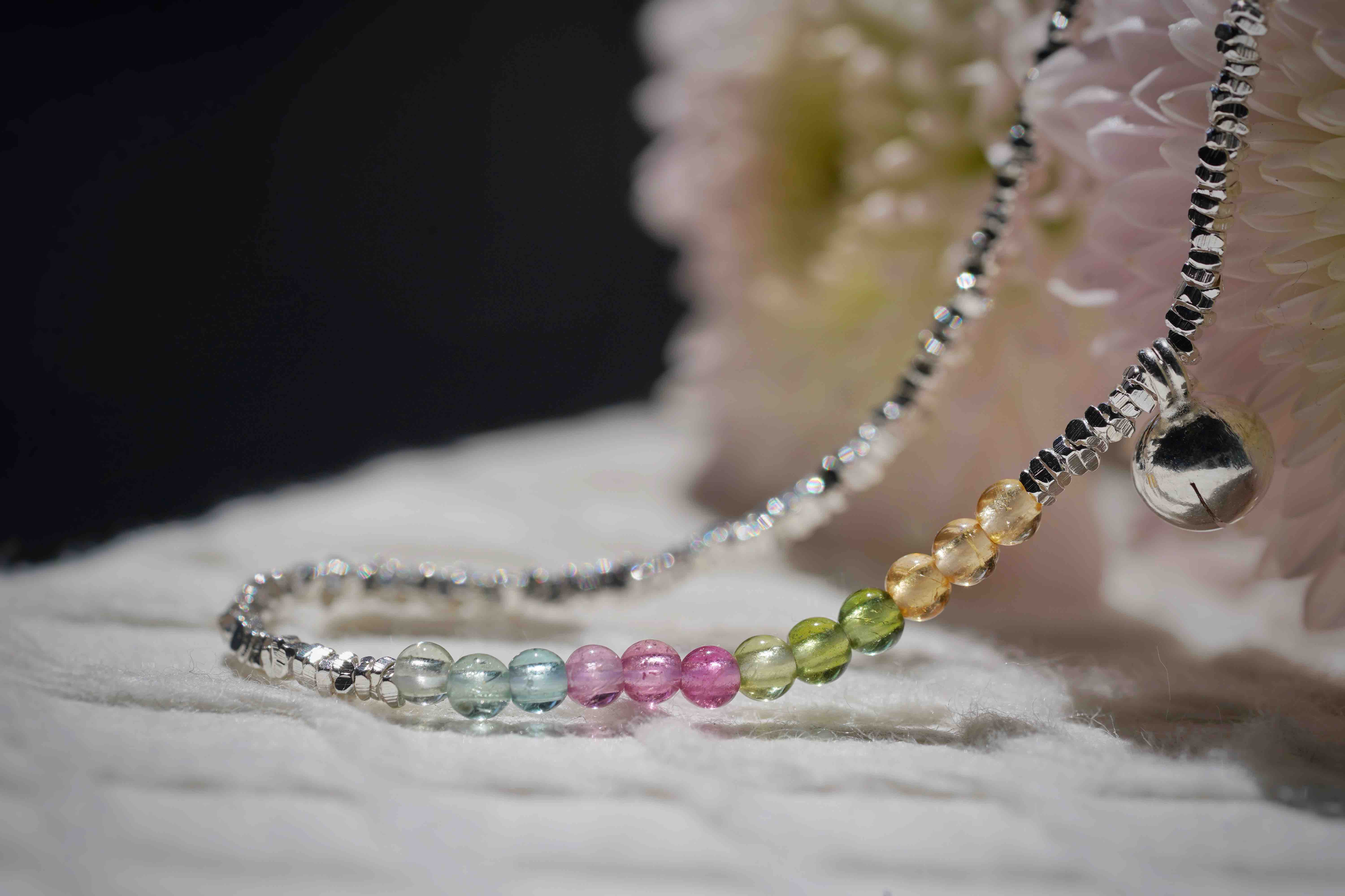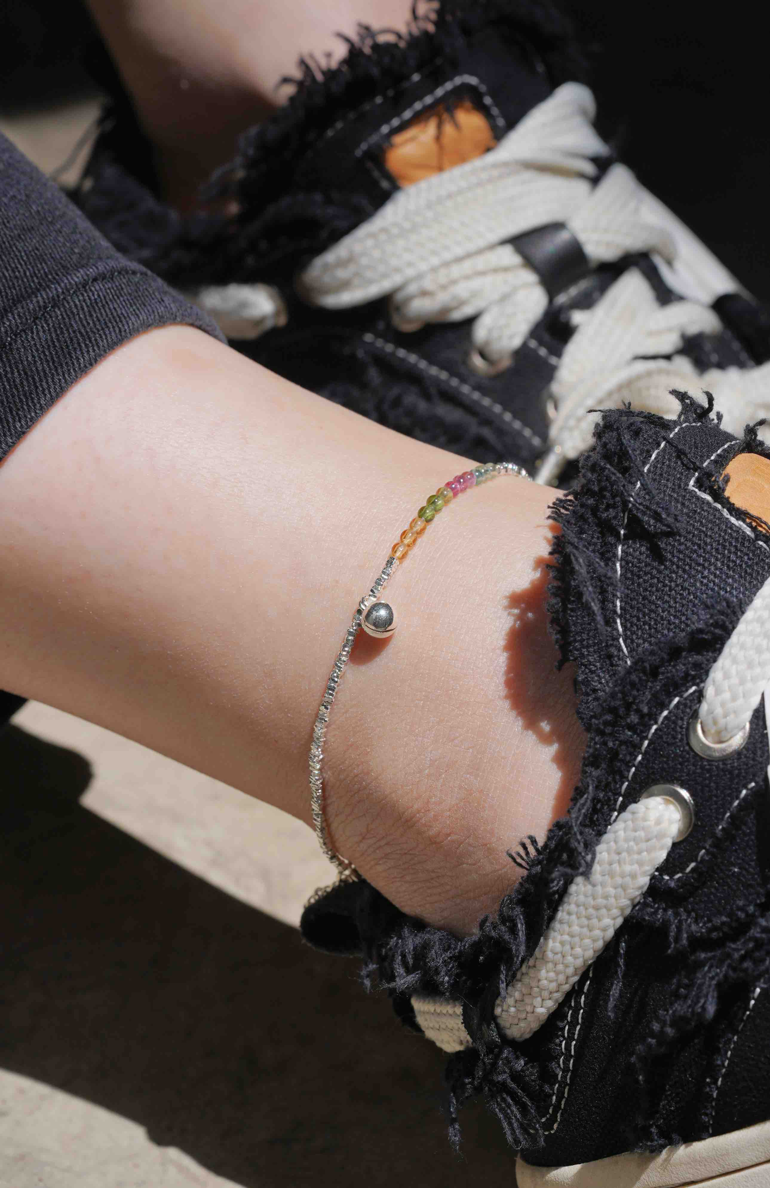 炎炎夏日,脚链终于来了我们用糖果碧玺打造了彩虹的视角