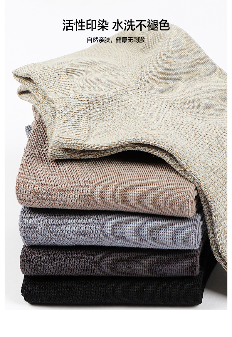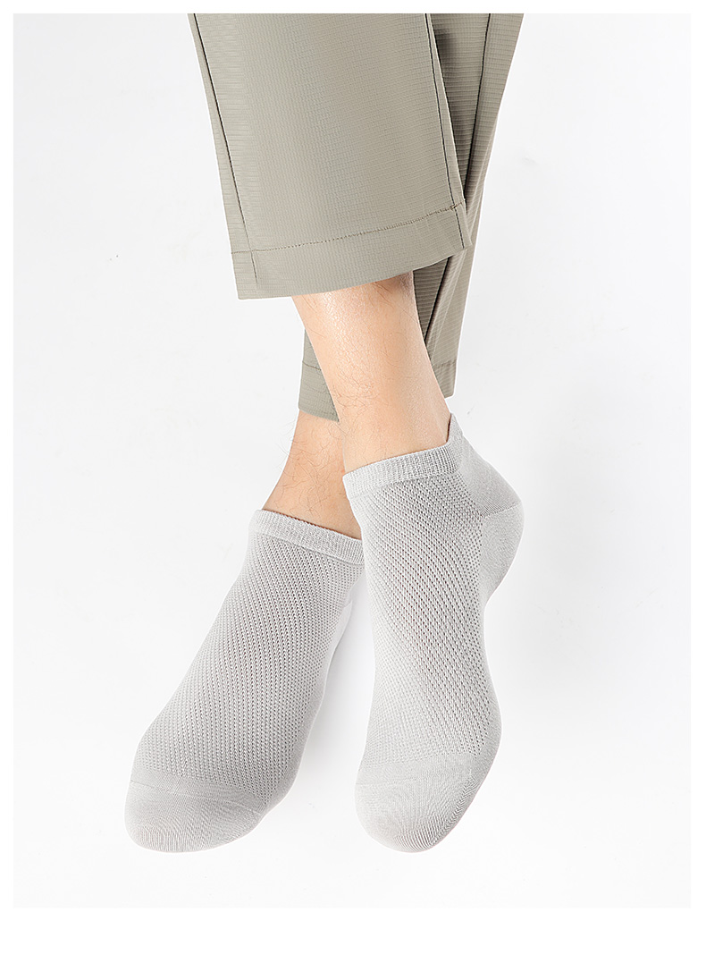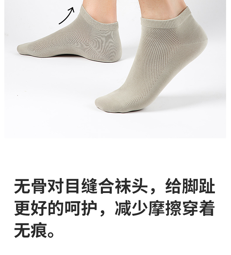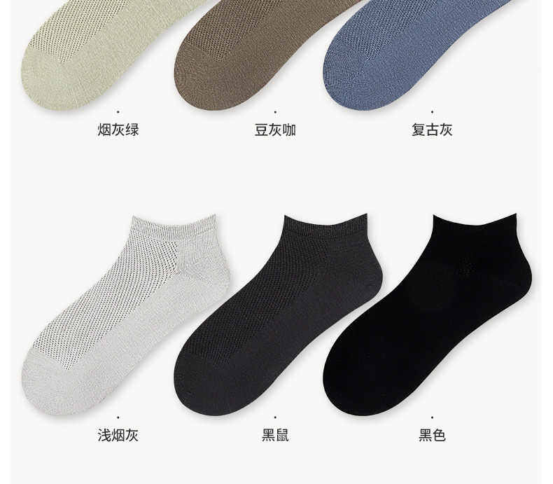 5双 足装秀高棉男士网眼船袜春夏无骨防臭高弹纯色吸汗透气男短袜
