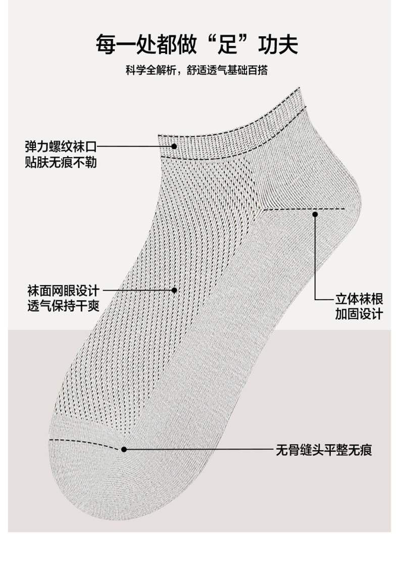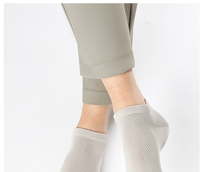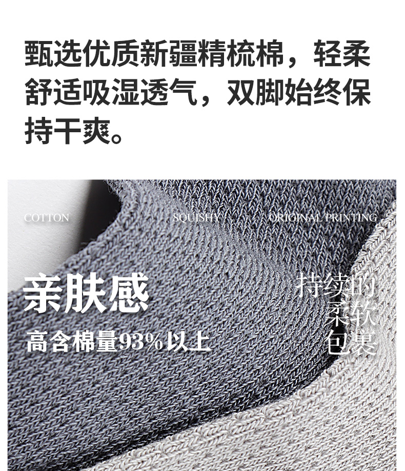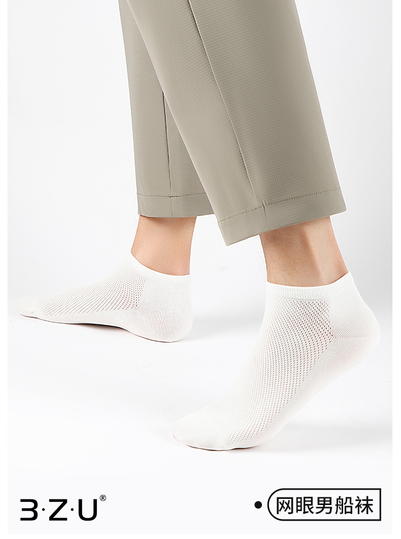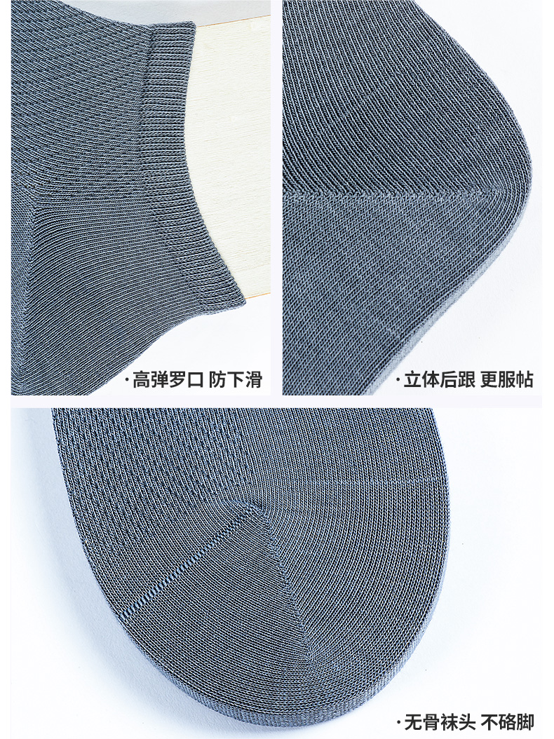5双 足装秀高棉男士网眼船袜春夏无骨防臭高弹纯色吸汗透气男短袜
