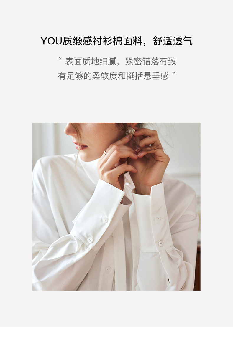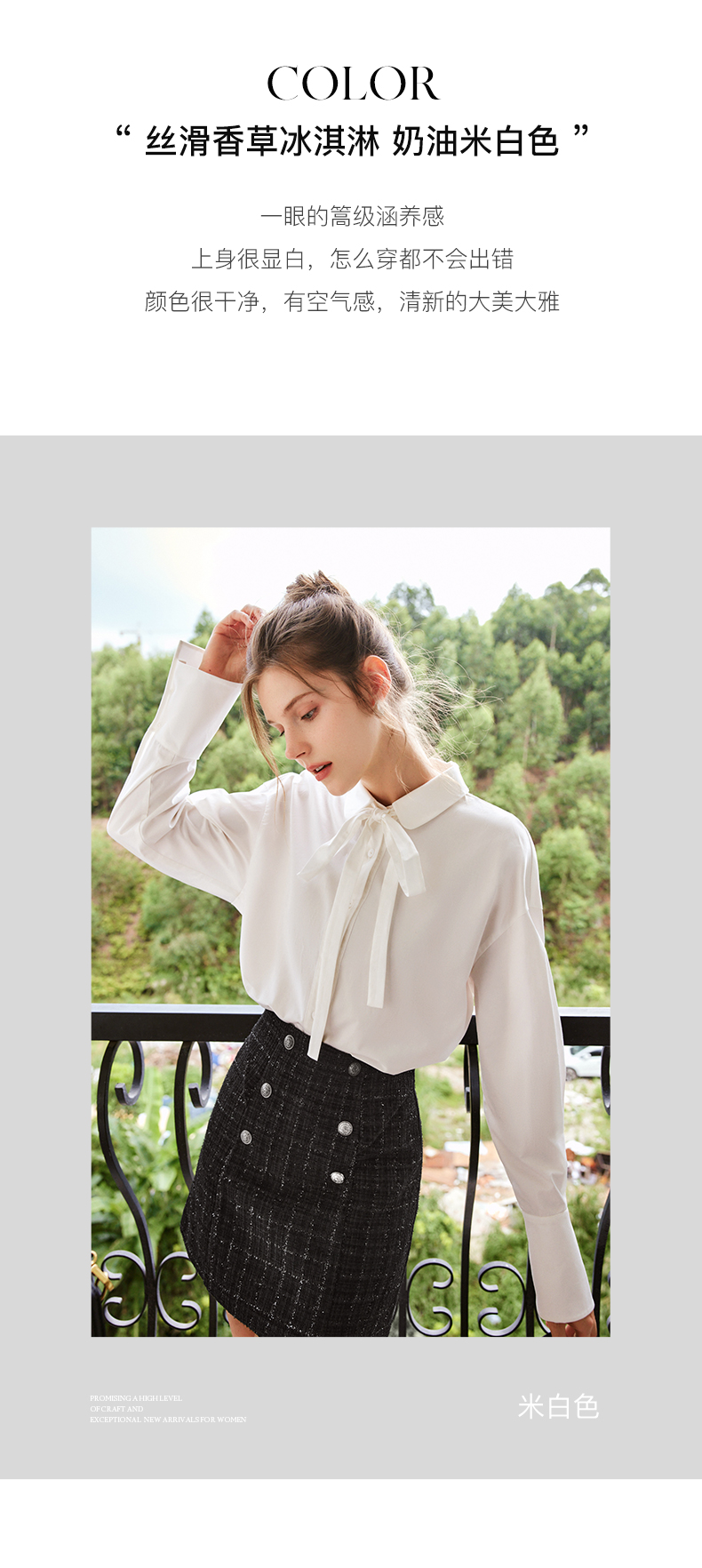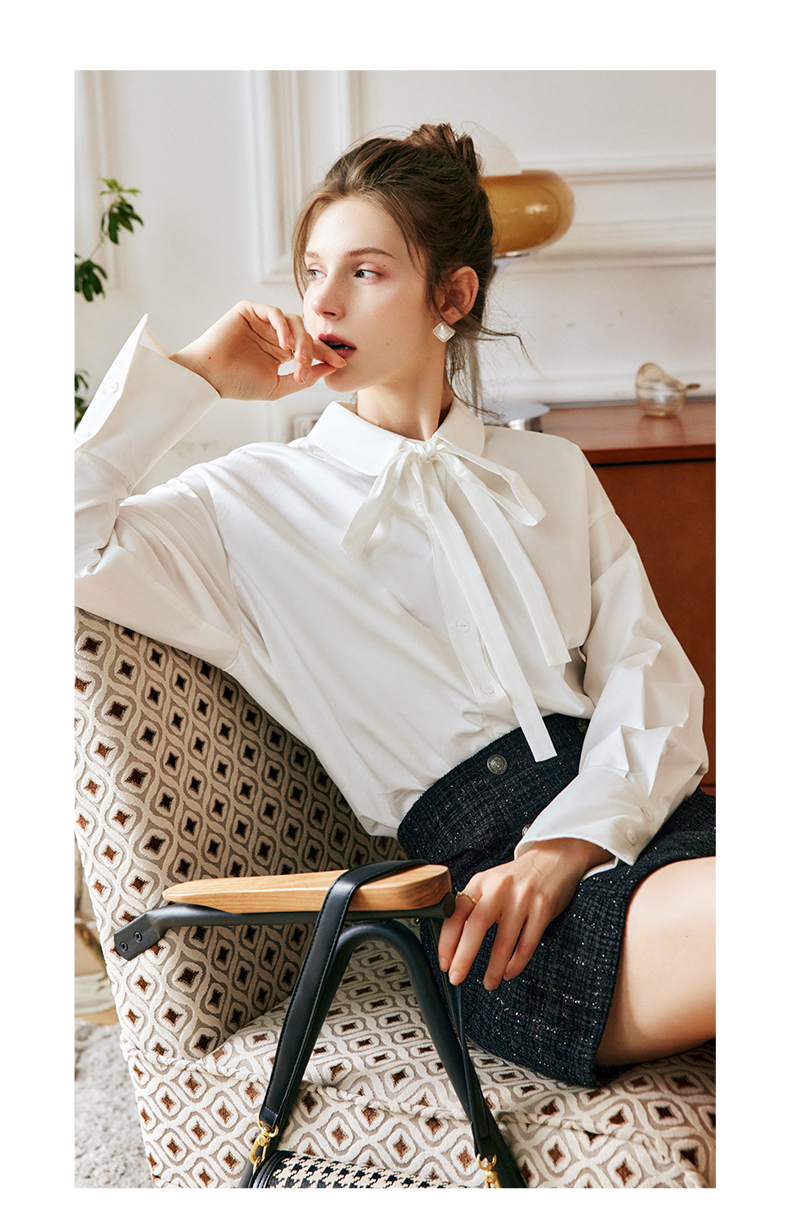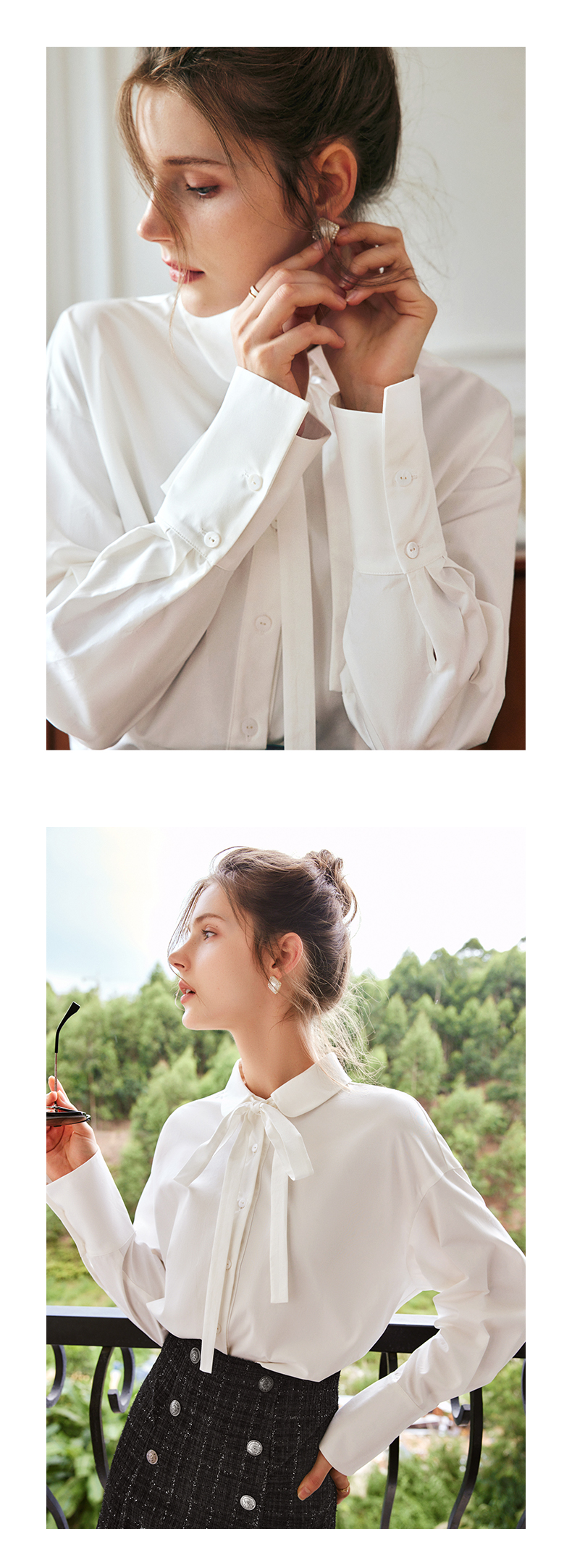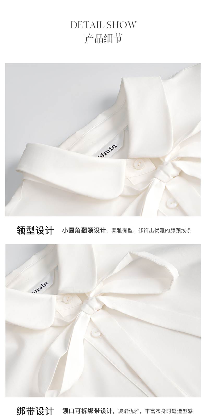 OLrain法式白色长袖衬衫女早秋2022年新款简约百搭设计感绑带衬衣