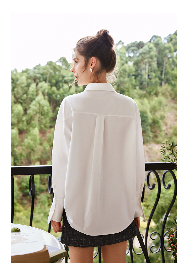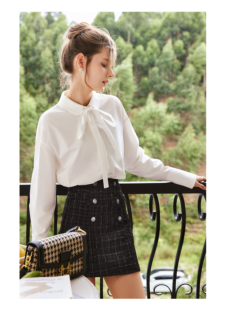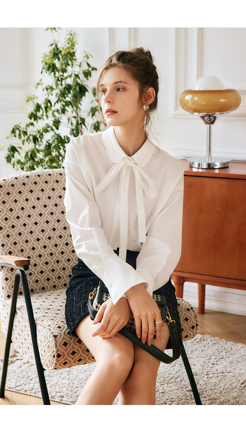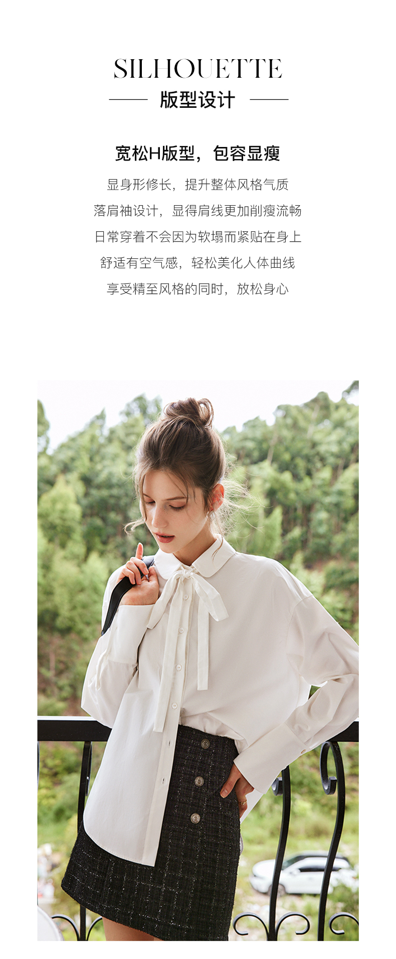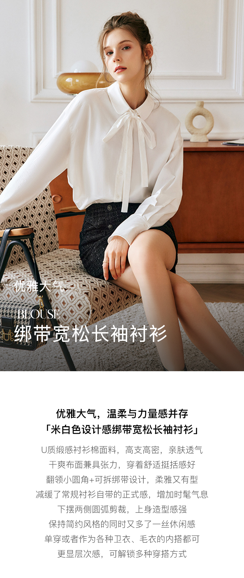 OLrain法式白色长袖衬衫女早秋2022年新款简约百搭设计感绑带衬衣