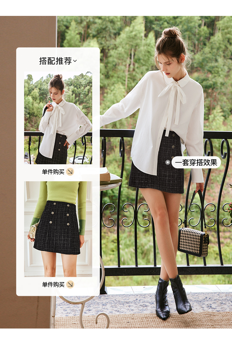 OLrain欧芮儿黑色假两件连衣裙女初秋2023新款收腰显瘦衬衫式裙子