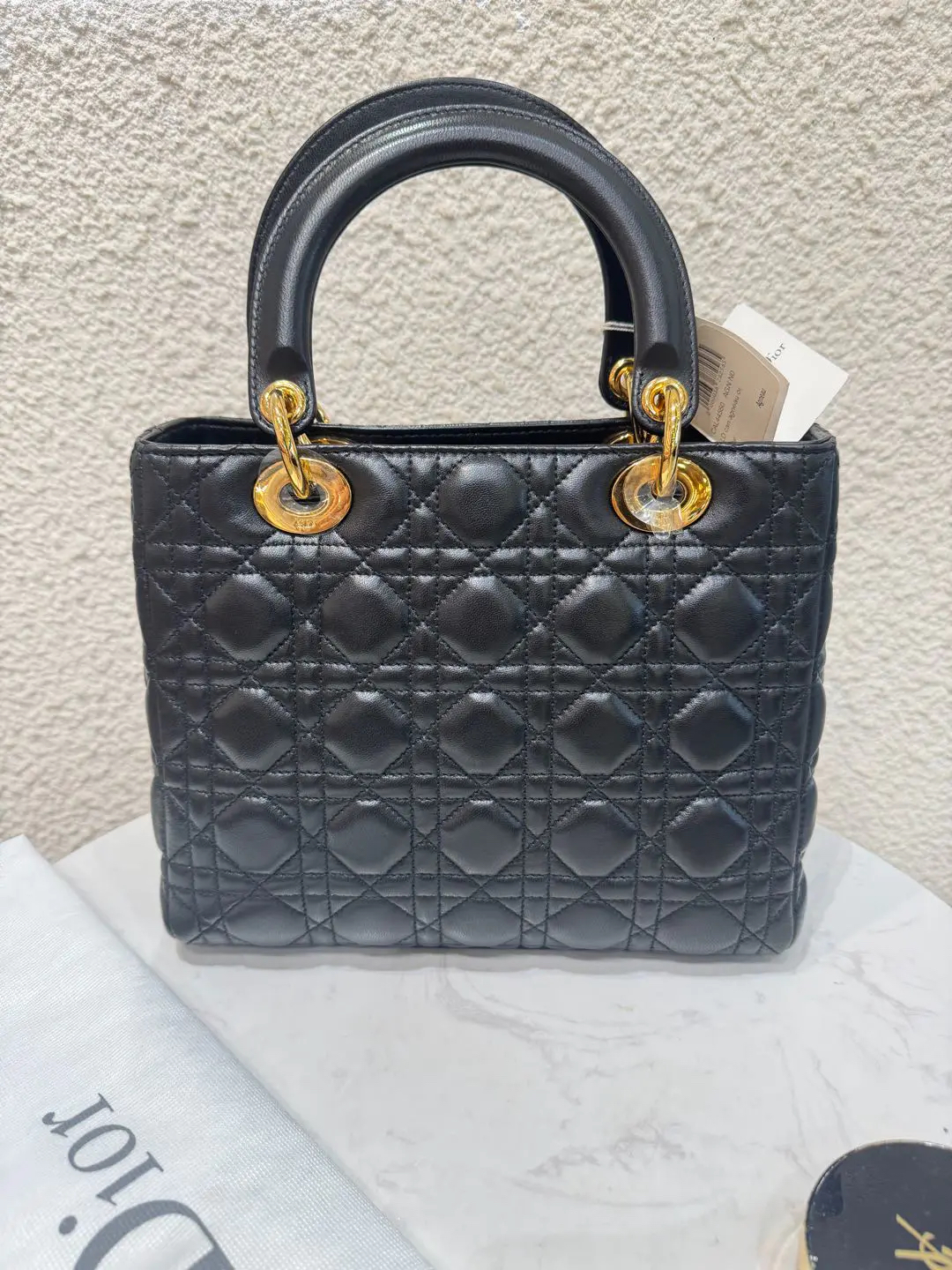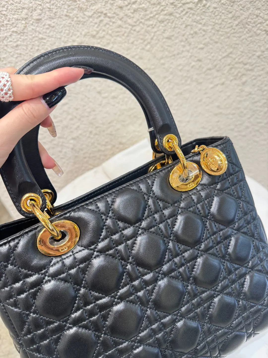 【商品详情】正品二手 Dior 戴妃 五格 黑金 羊皮 手提 单肩包🍭98新 24*20 配件:肩带。简约不失经典 凹造型绝绝子🤩