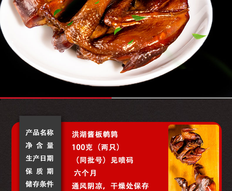 洪湖隆客多酱板鹌鹑2只装礼盒100g