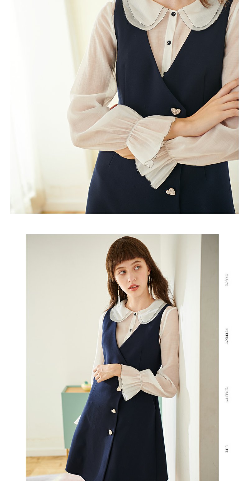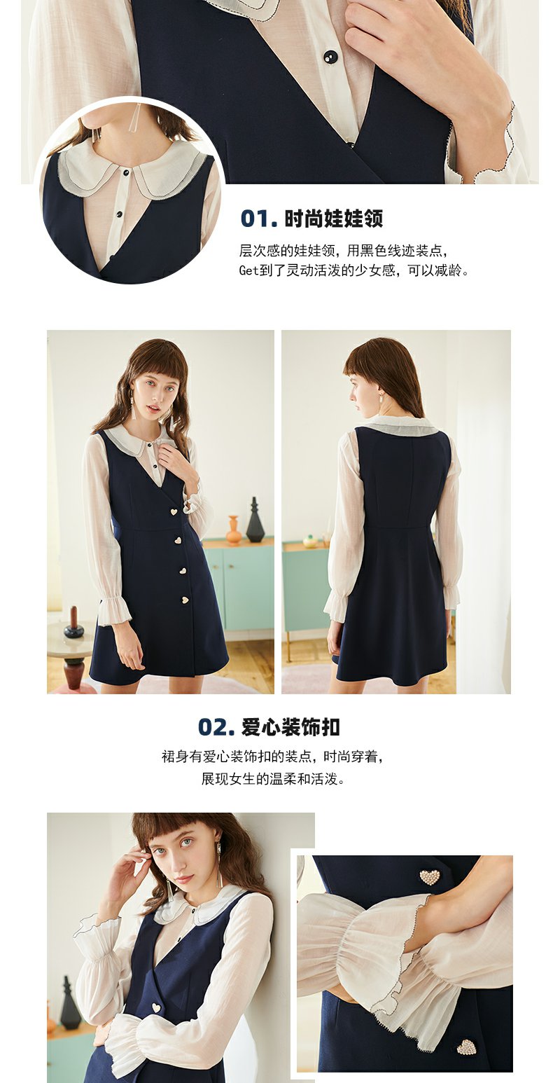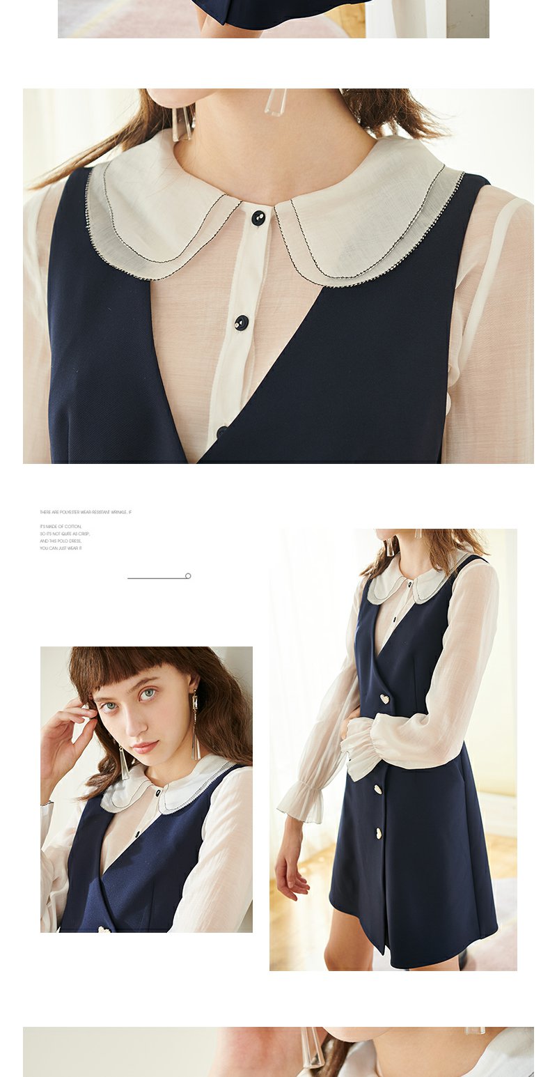 欧芮儿新款娃娃领无袖连衣裙女中长款不规则A字