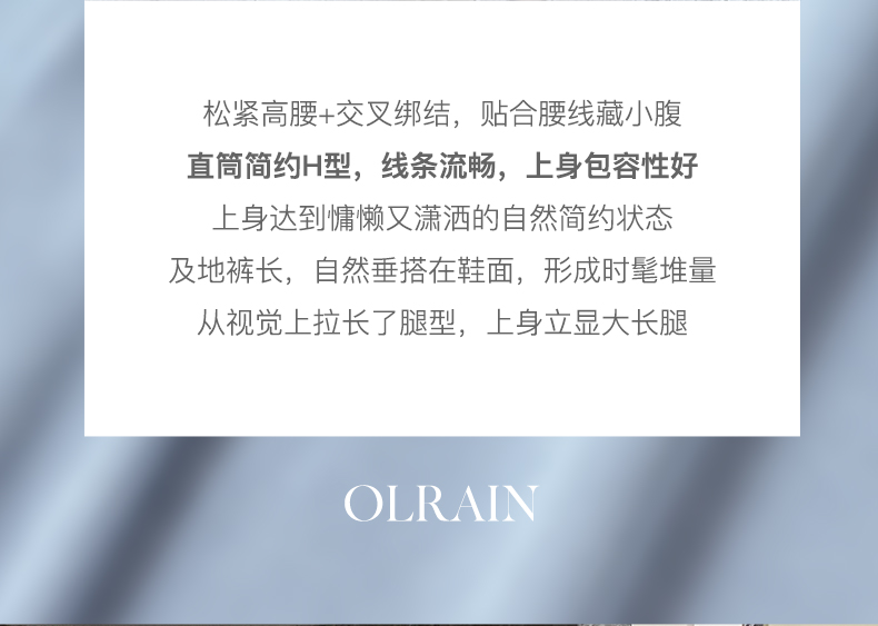 - “精致”是欧芮儿olrain品牌文化的核心,欧芮儿认为,精致的女人,不但要外在动人,更要内在迷人,内外兼修,有魅力、有气质、有内涵,自信而不自傲,优雅而不矫揉,自有万种风情而不轻浮,更不故作矜持。