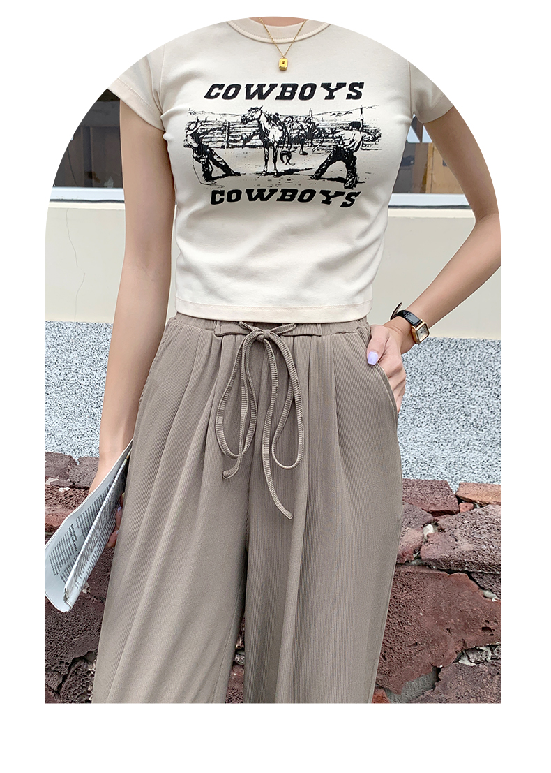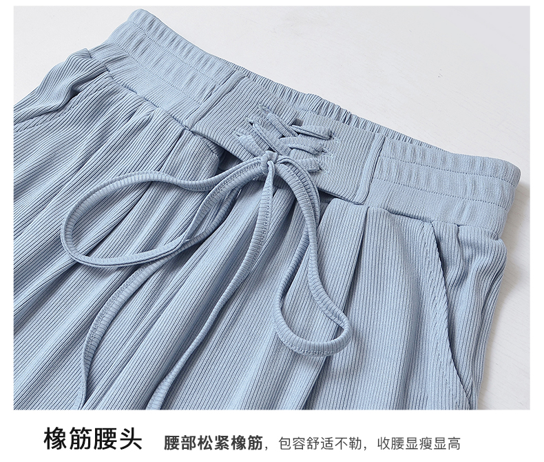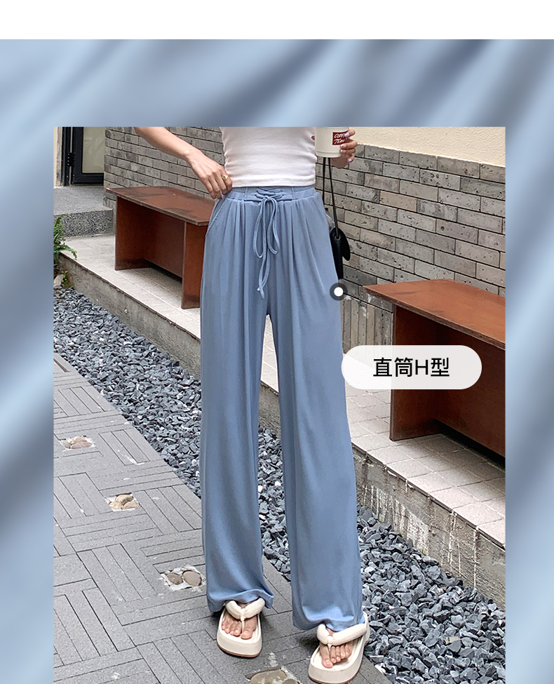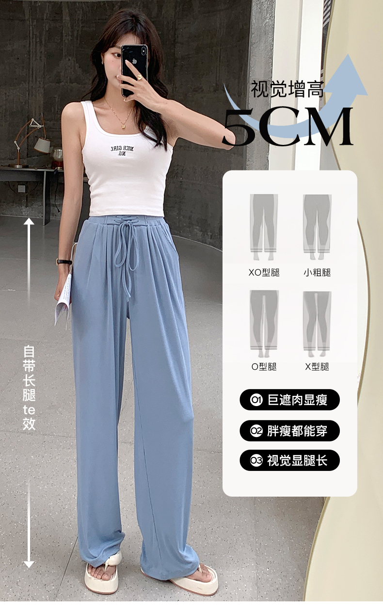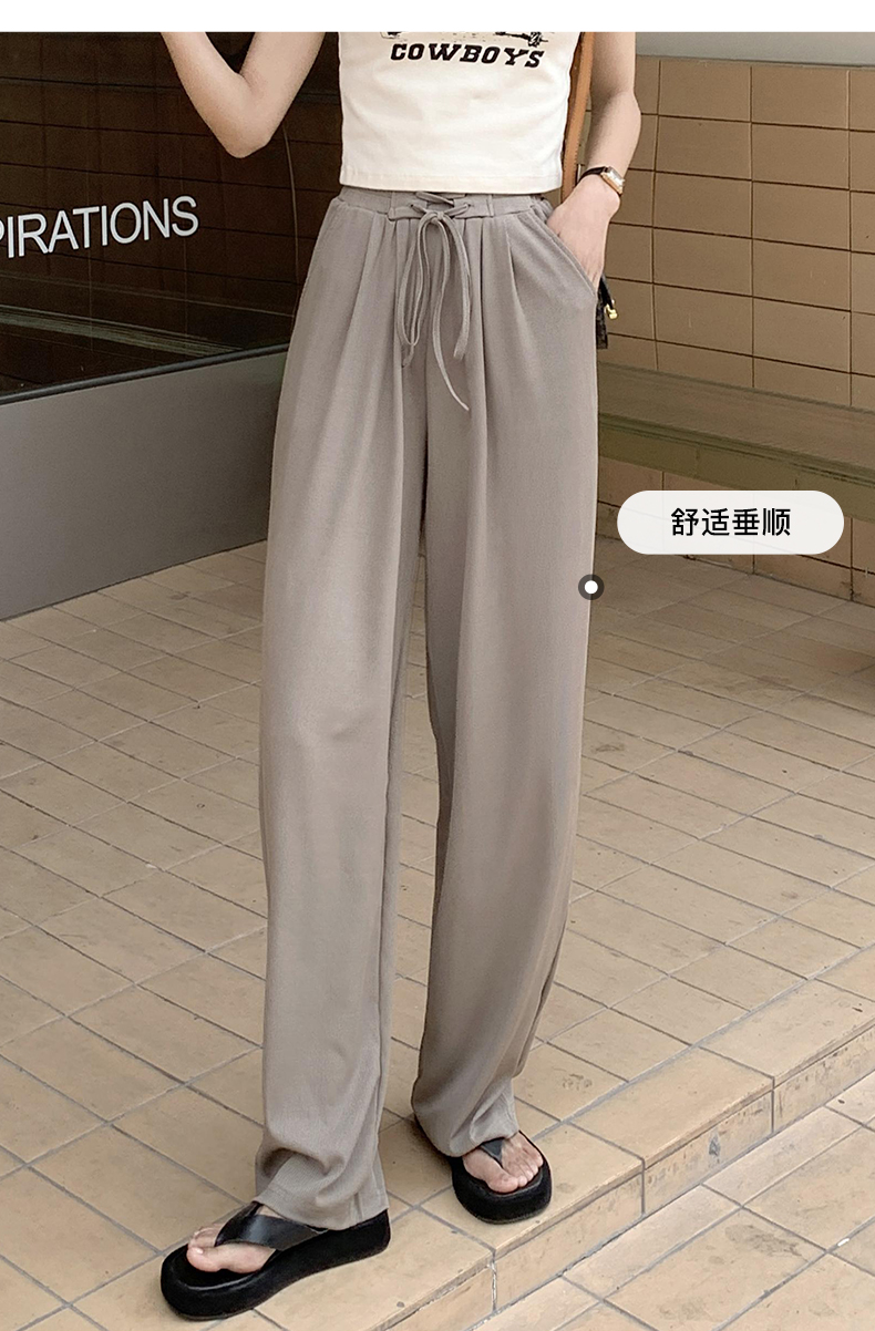 OLrain欧芮儿法式冰丝休闲裤女夏季2023新款松紧腰宽松阔腿长裤薄