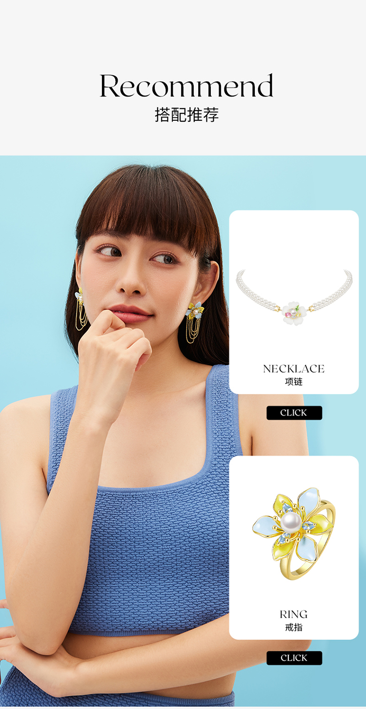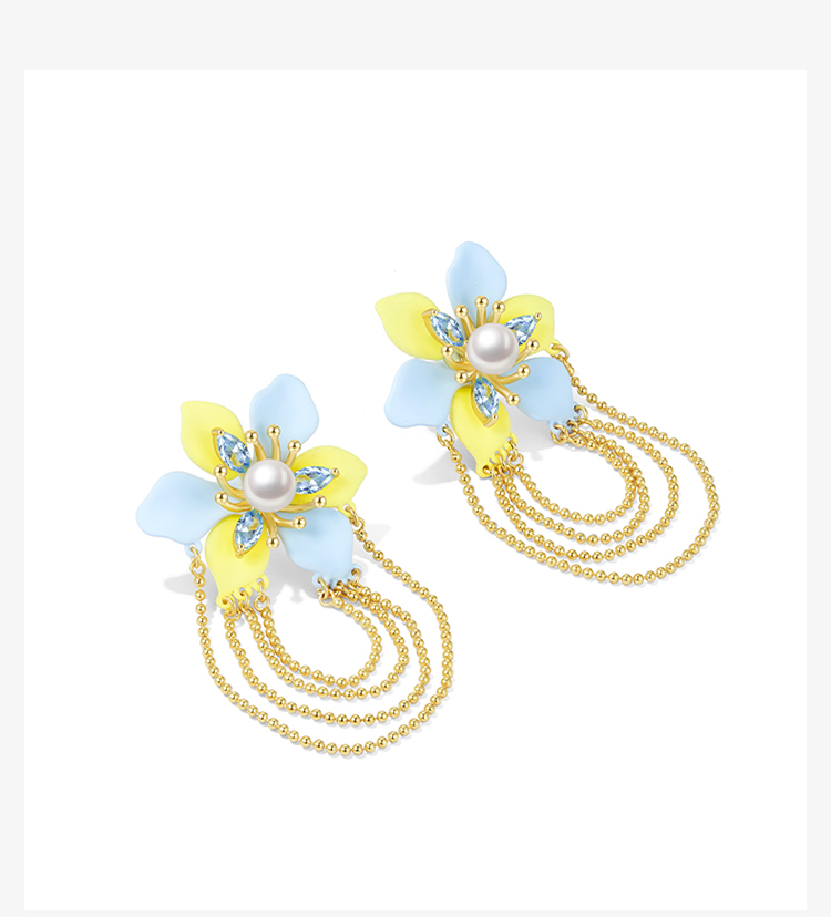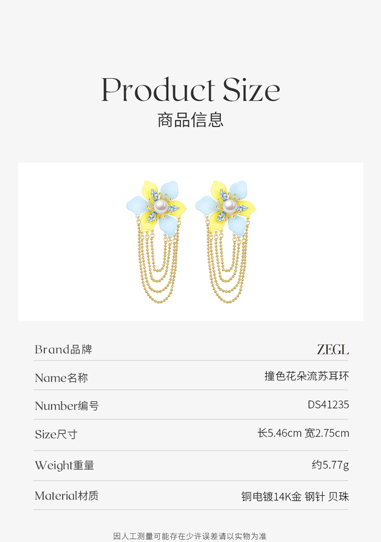 ZEGL设计师秘密花园系列花朵流苏耳环女高级感珍珠耳钉夏天耳饰品