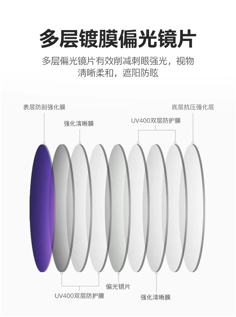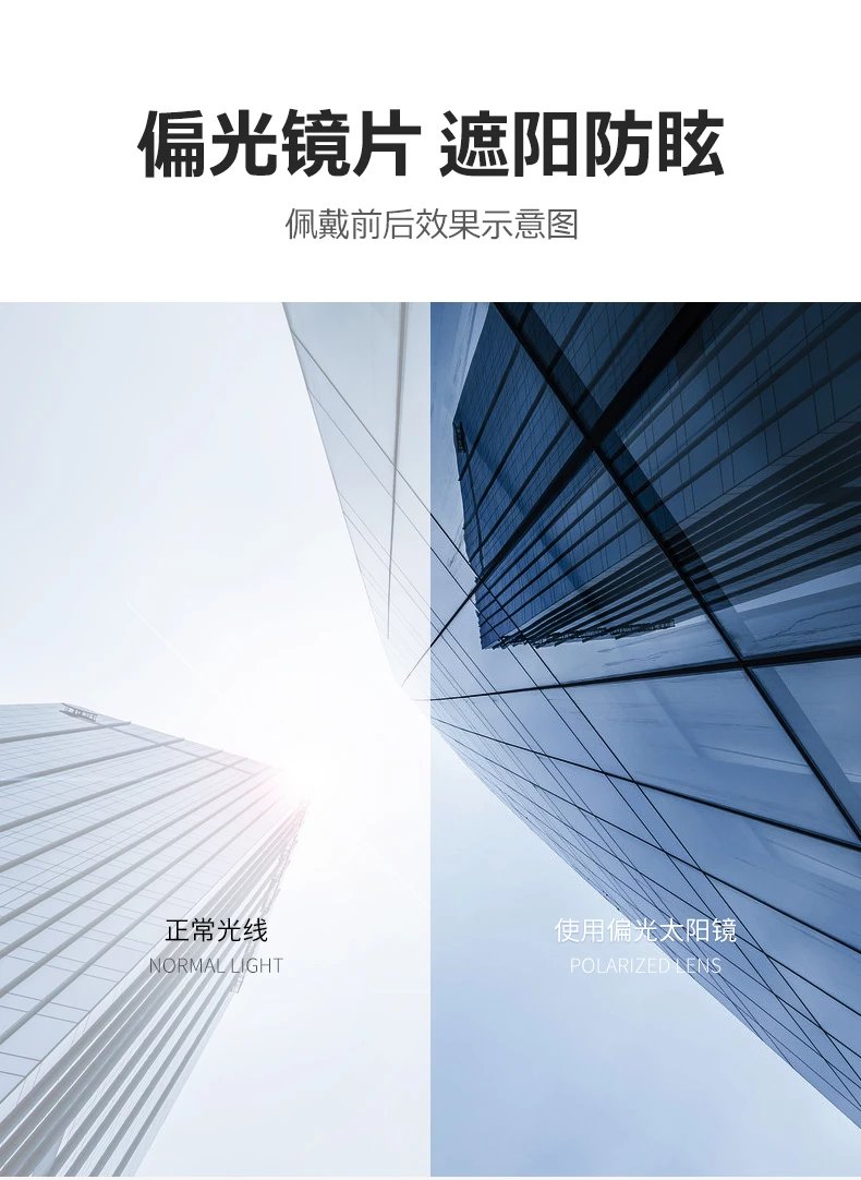 3、超轻TR镜框,轻盈无感,镜腿可根据脸型自动微调,佩戴不变形。高清偏光镜片,阻隔炫光,防晒防紫外线 ,给眼睛多一层保护。