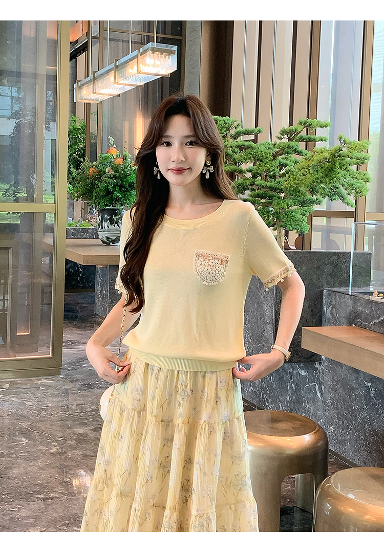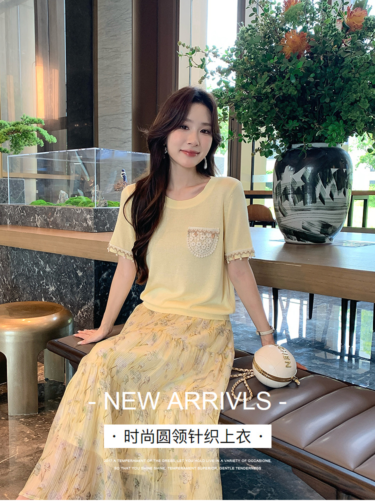 奢姿大码女装2025夏季欧若风度假圆领针织衫胖妹妹时尚简约上衣9852690556