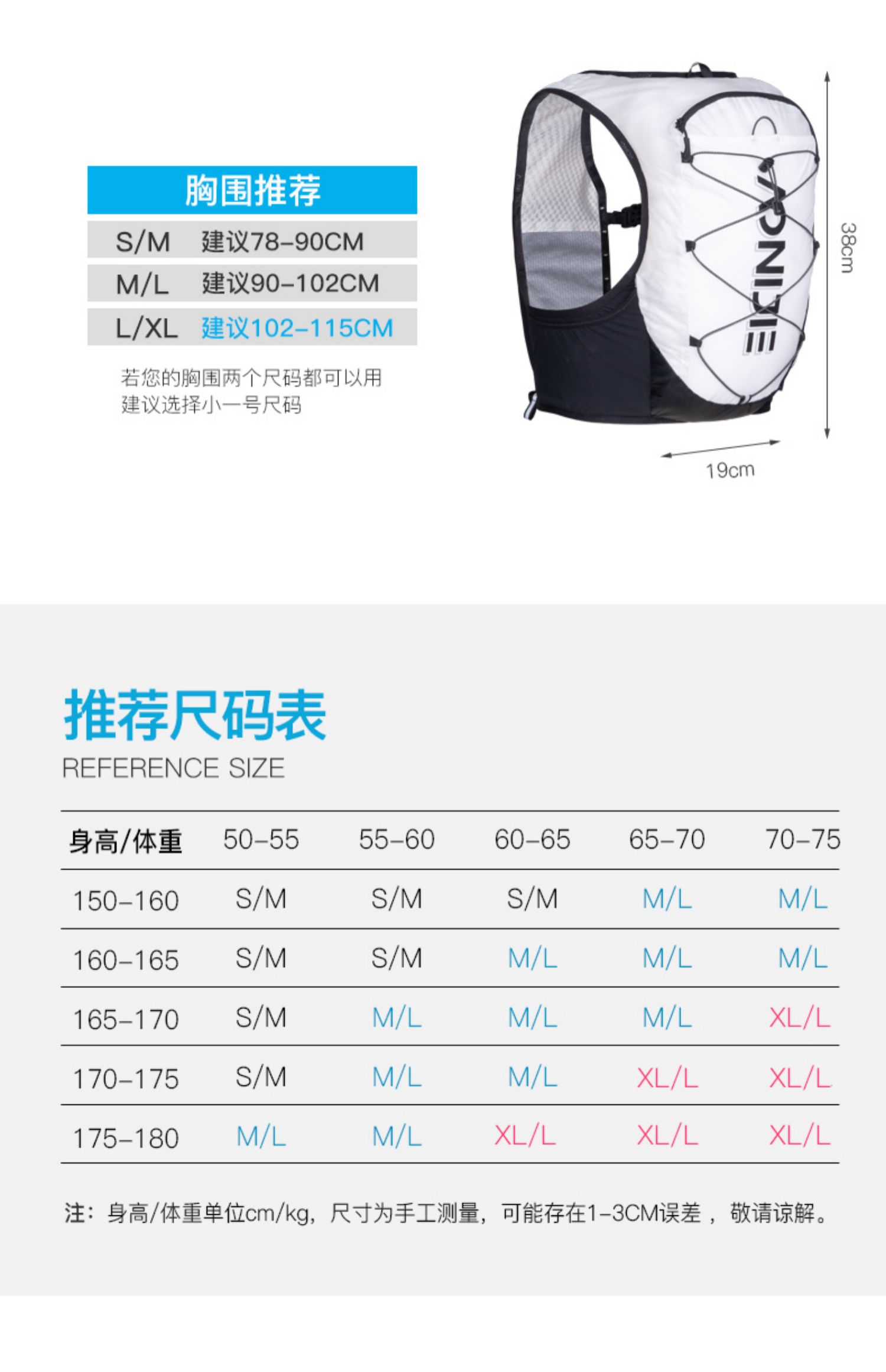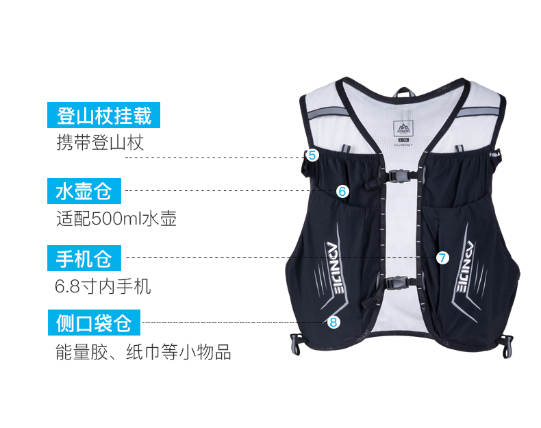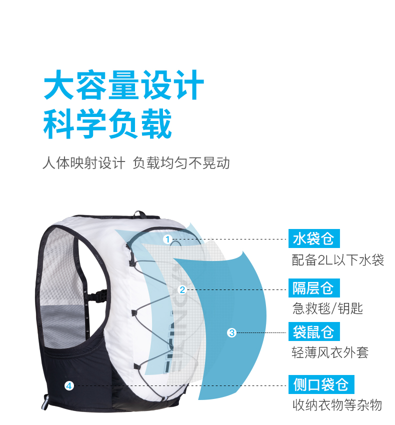 奥尼捷白黑色越野背包约10升装C9108S黑白色