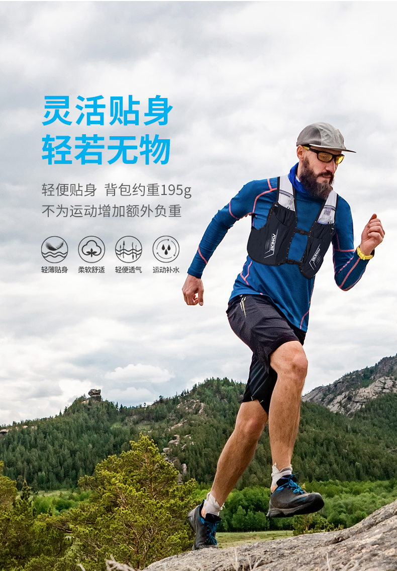 奥尼捷跑步腰包,大功能双水壶马拉松跑步包