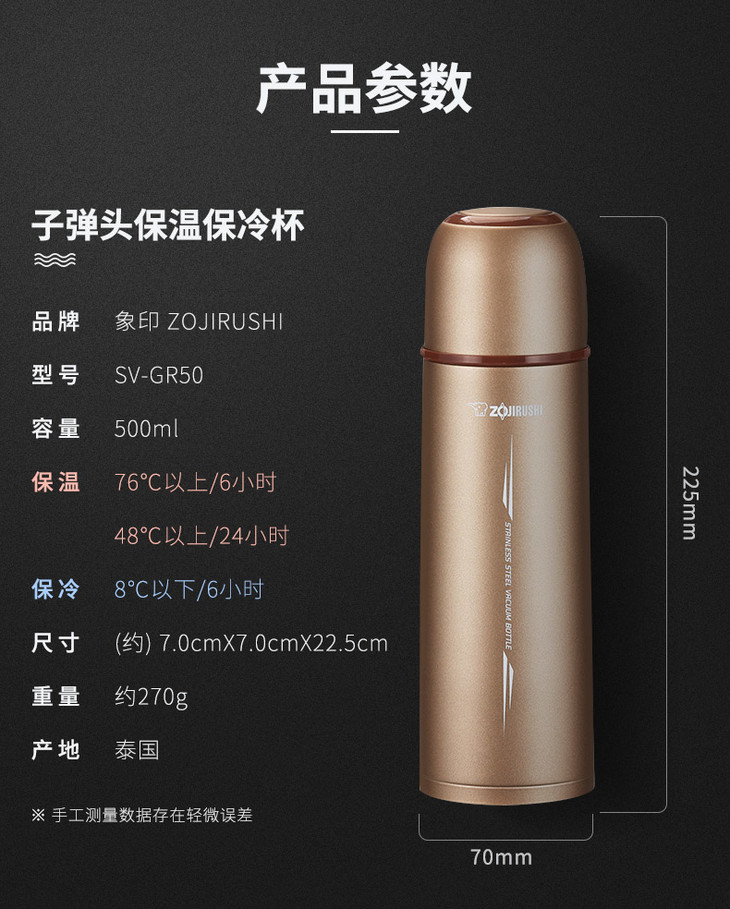 象印子弹头(带盖)保温保冷杯SV-R50-PS(粉)