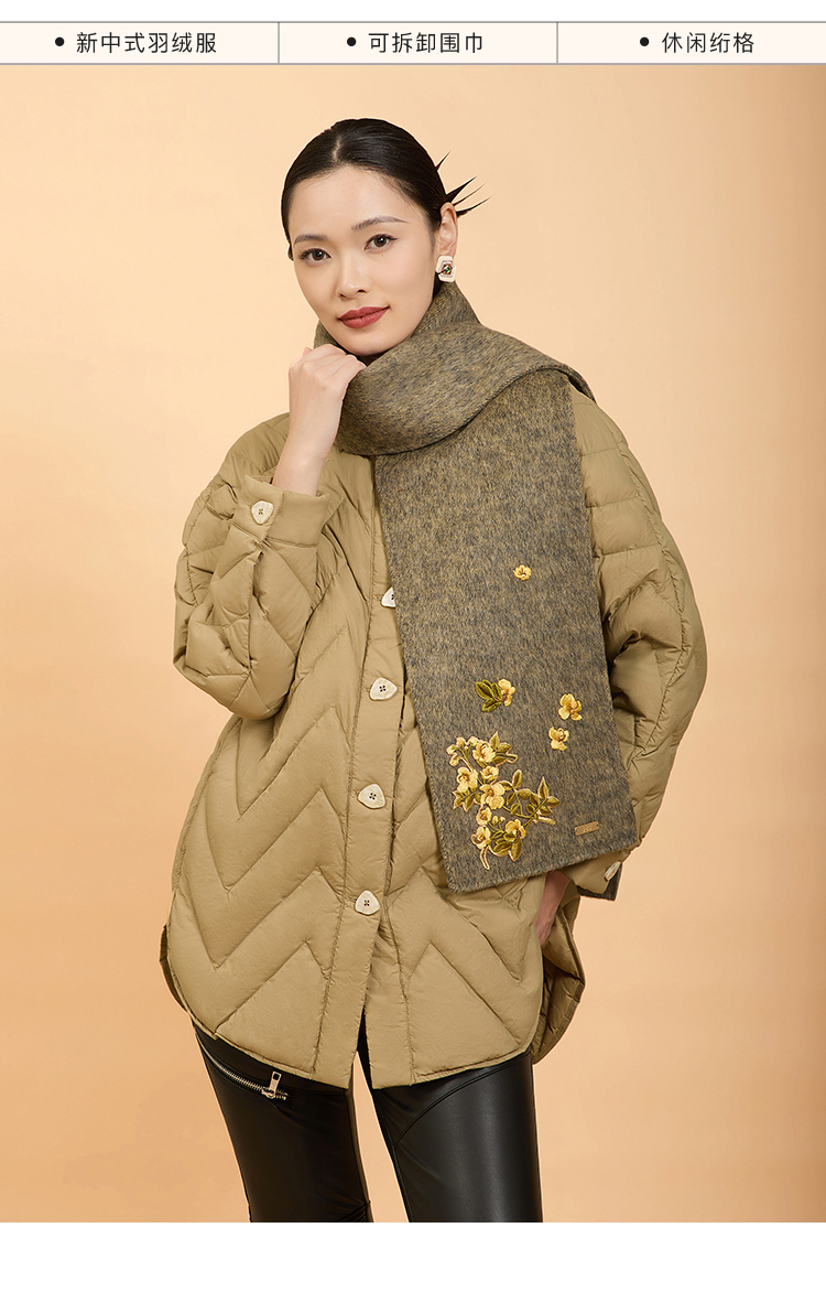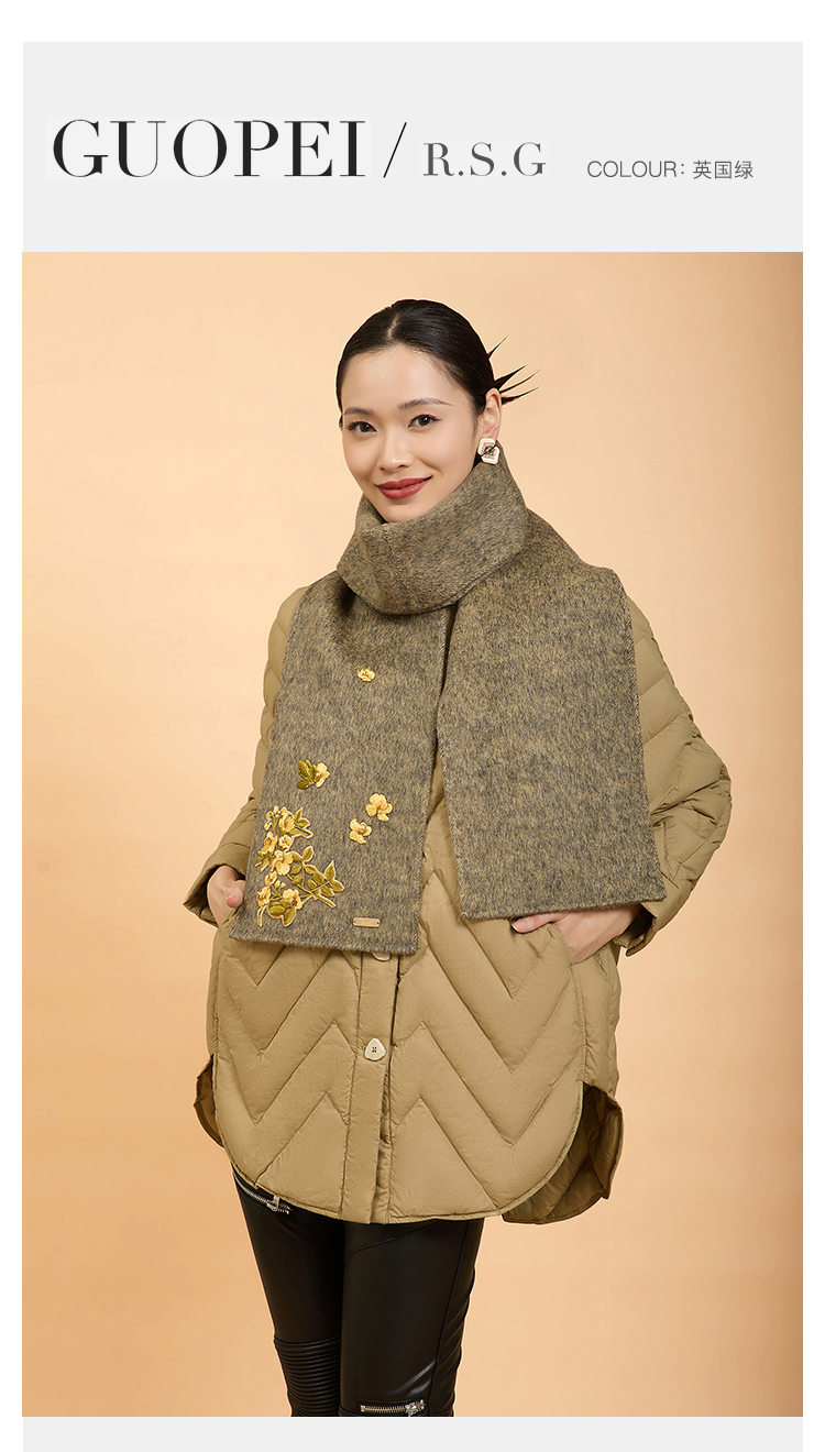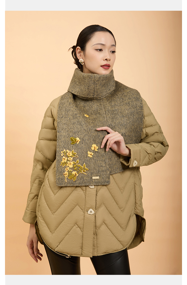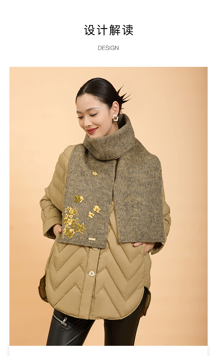 郭培成衣品牌精品系列围巾刺绣新中式休闲羽绒服