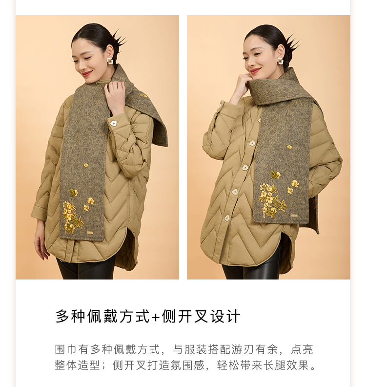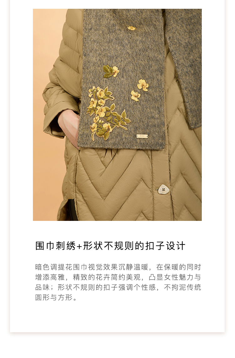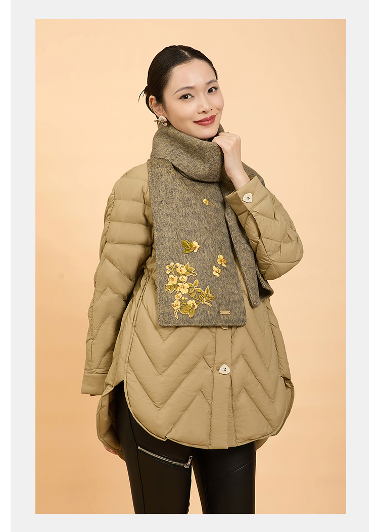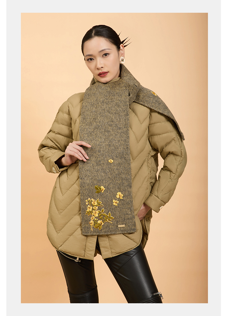 郭培成衣品牌精品系列围巾刺绣新中式休闲羽绒服