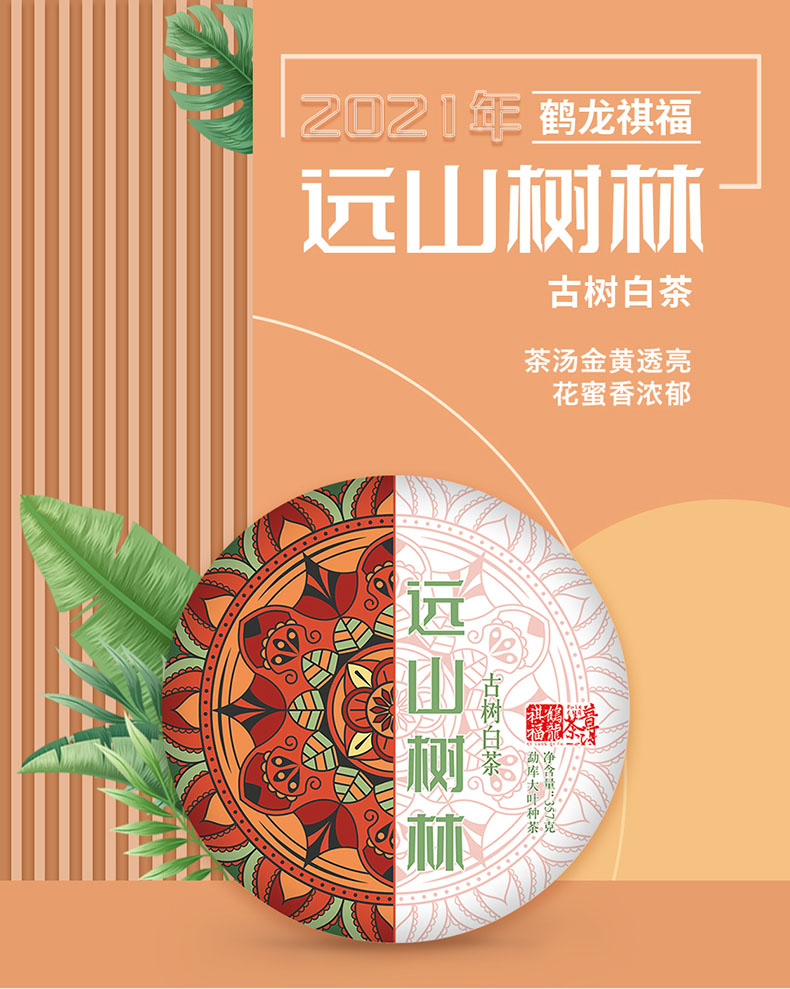 古树白茶丨鹤龍祺福 2021年 远山树林 357克/饼