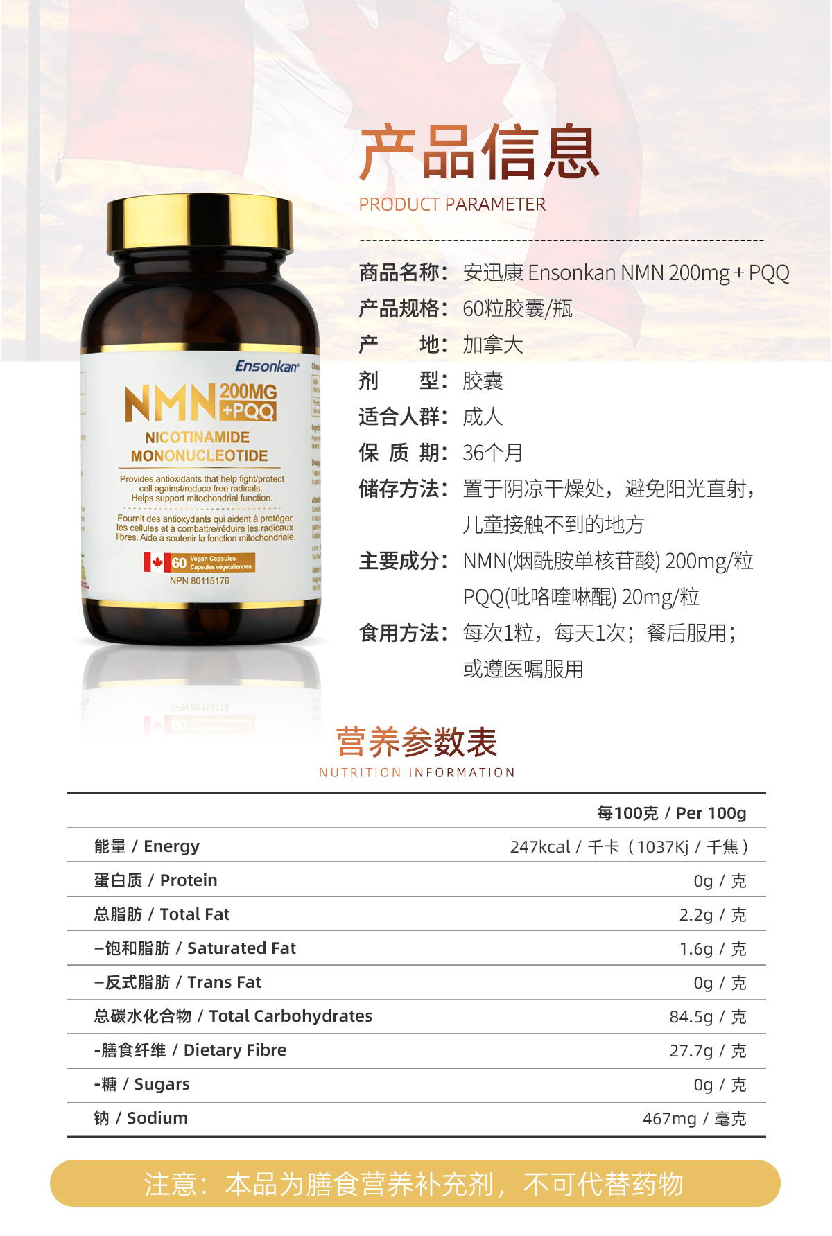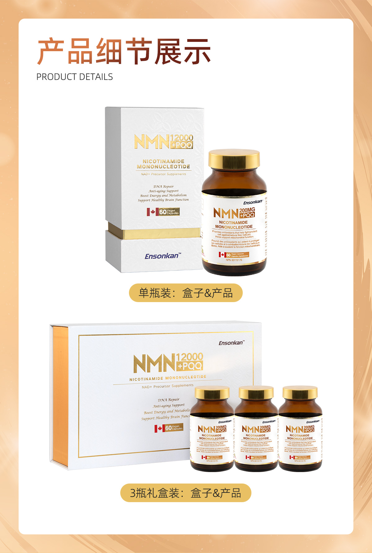 安迅康 Ensonkan NMN 200mg + PQQ β-烟酰胺单核苷酸 1瓶装/3瓶套装 (G)