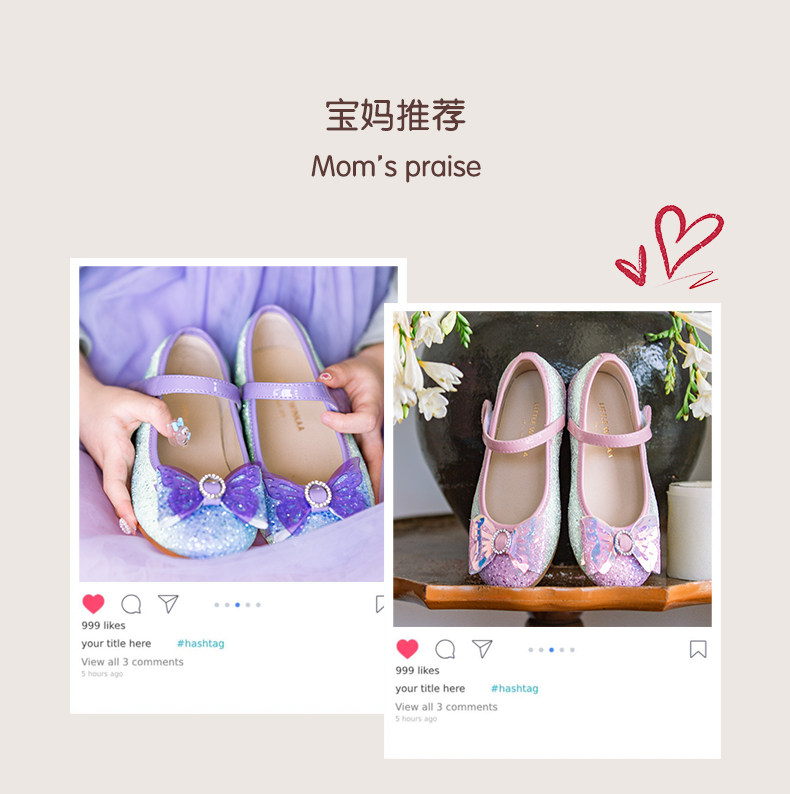 【云优选】Little winkaa女童公主鞋艾莎水晶皮鞋春秋新款小女孩配裙子单鞋