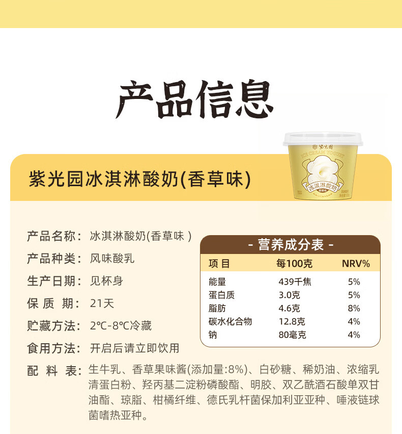 紫光园冰淇淋酸奶香草味120g